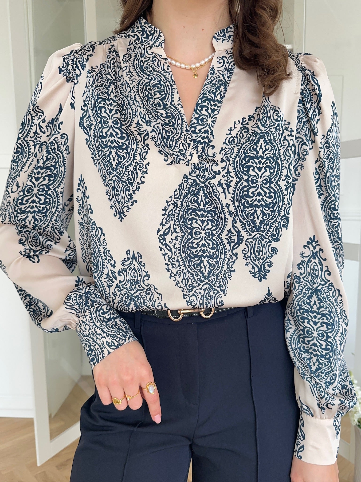 Rosslyn Paisley Drop Bluse Creme fra Neo Noir