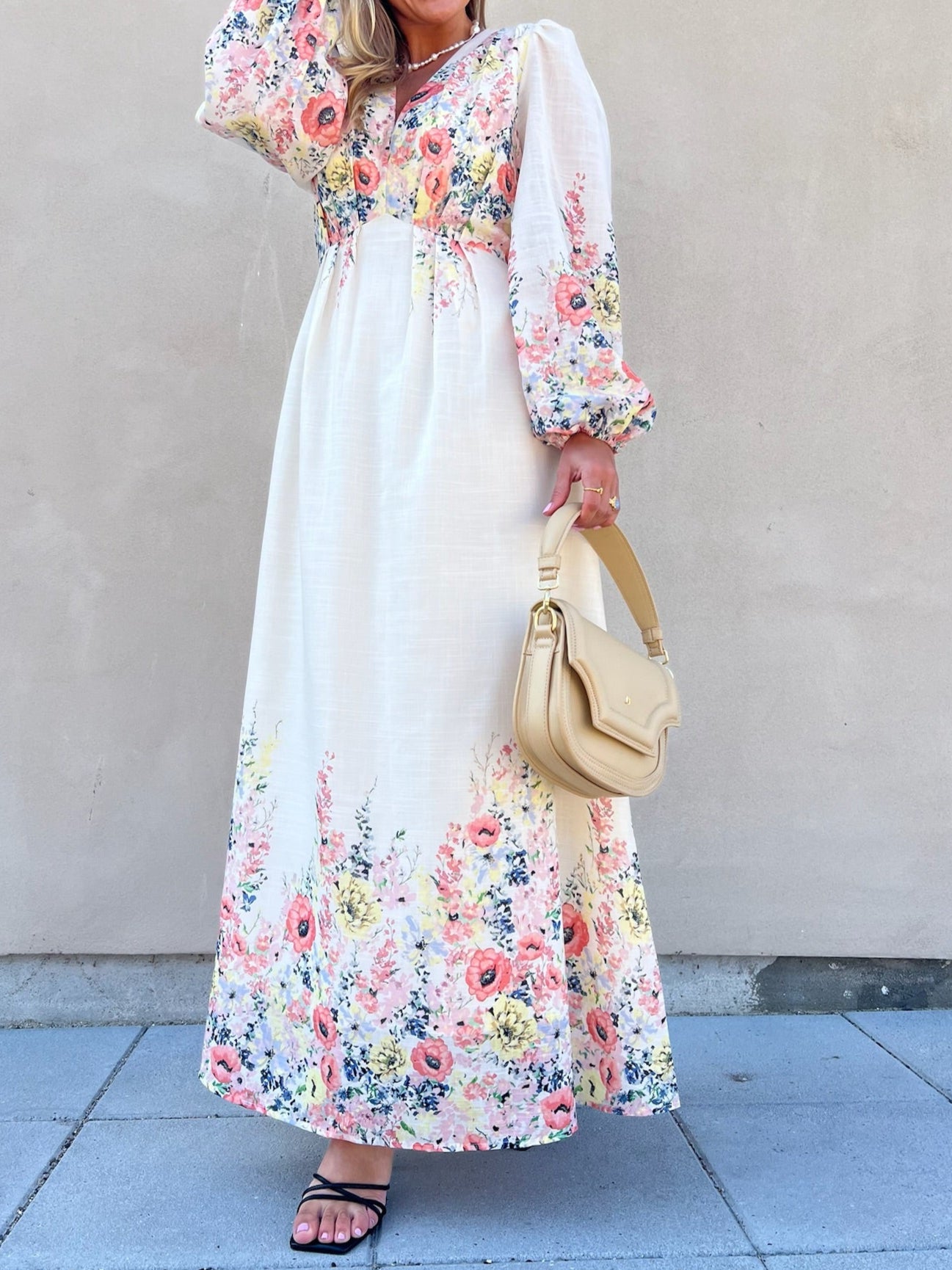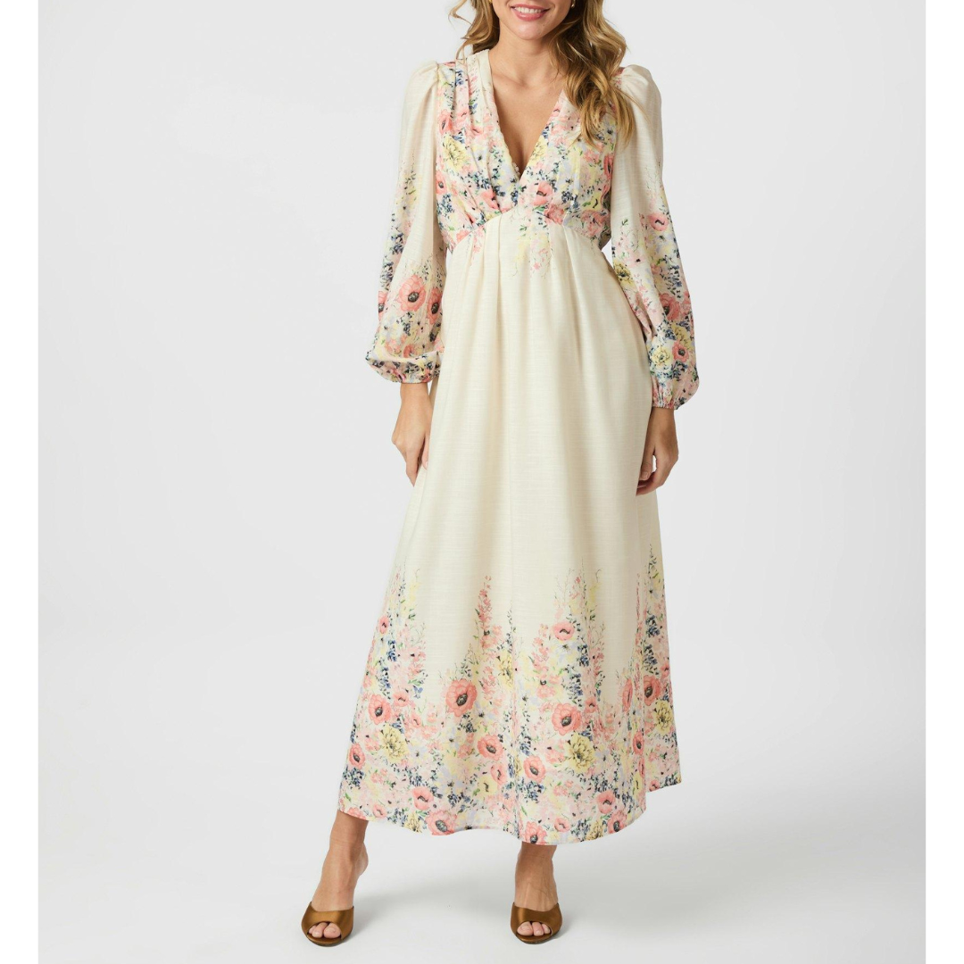 Silfi Flower Print Kjole Creme fra Neo Noir