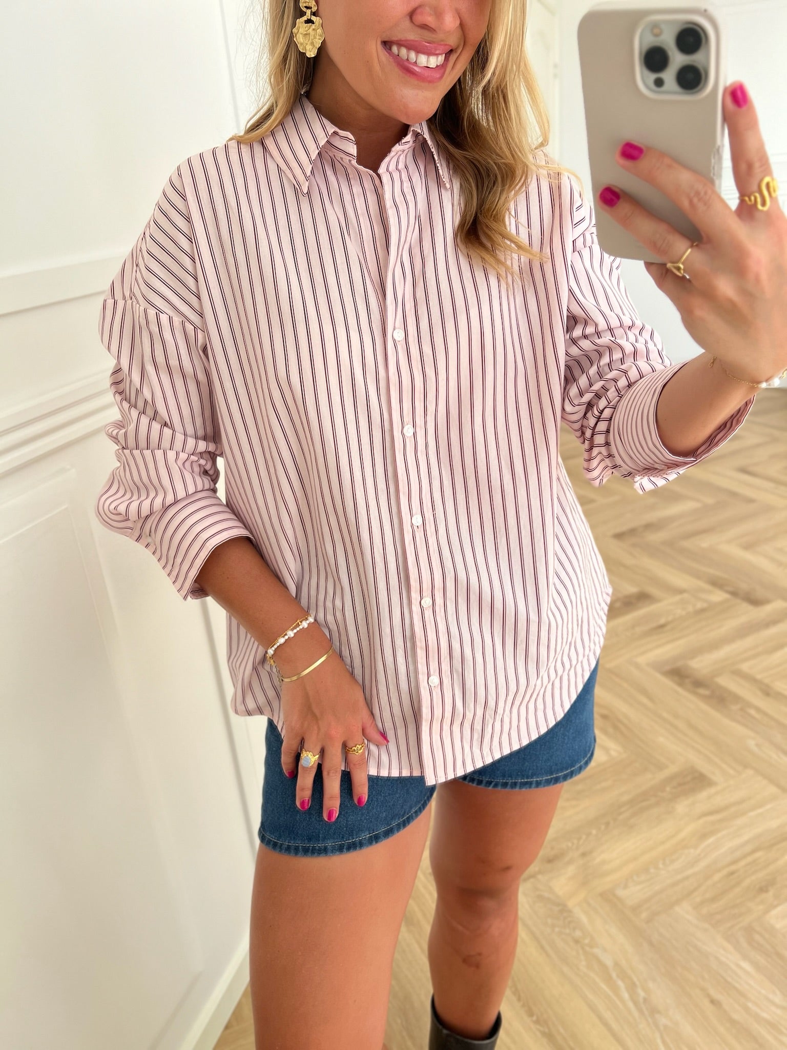 Only Oregon Nano LS Skjorte Fuschia Pink Stripes