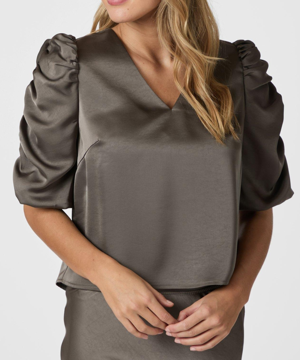 Neo Noir Elba Heavy Sateen Bluse Warm Grey