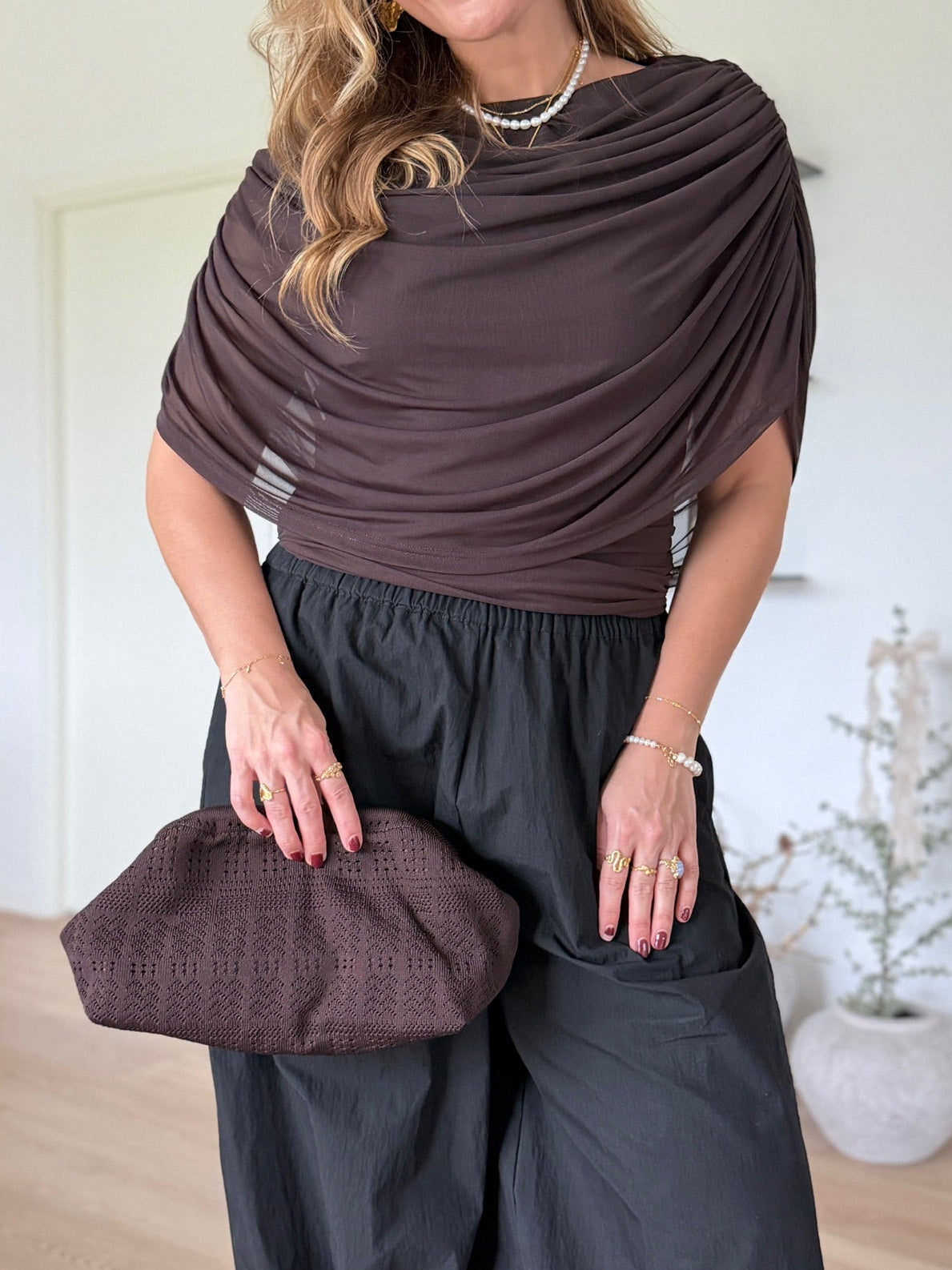 Neo Noir Cottuna Drapy Mesh Top Brown