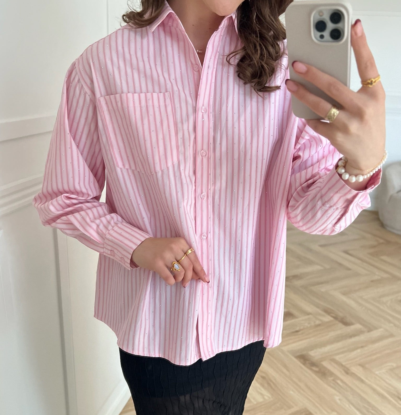 Neo Noir Dalma Soft Stripe Stone Skjorte Pink