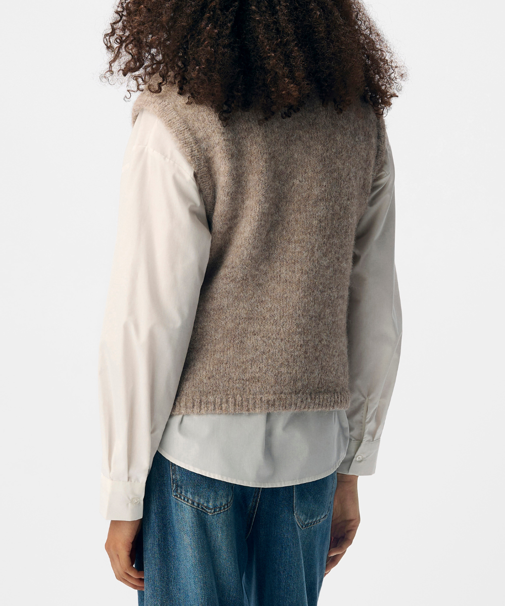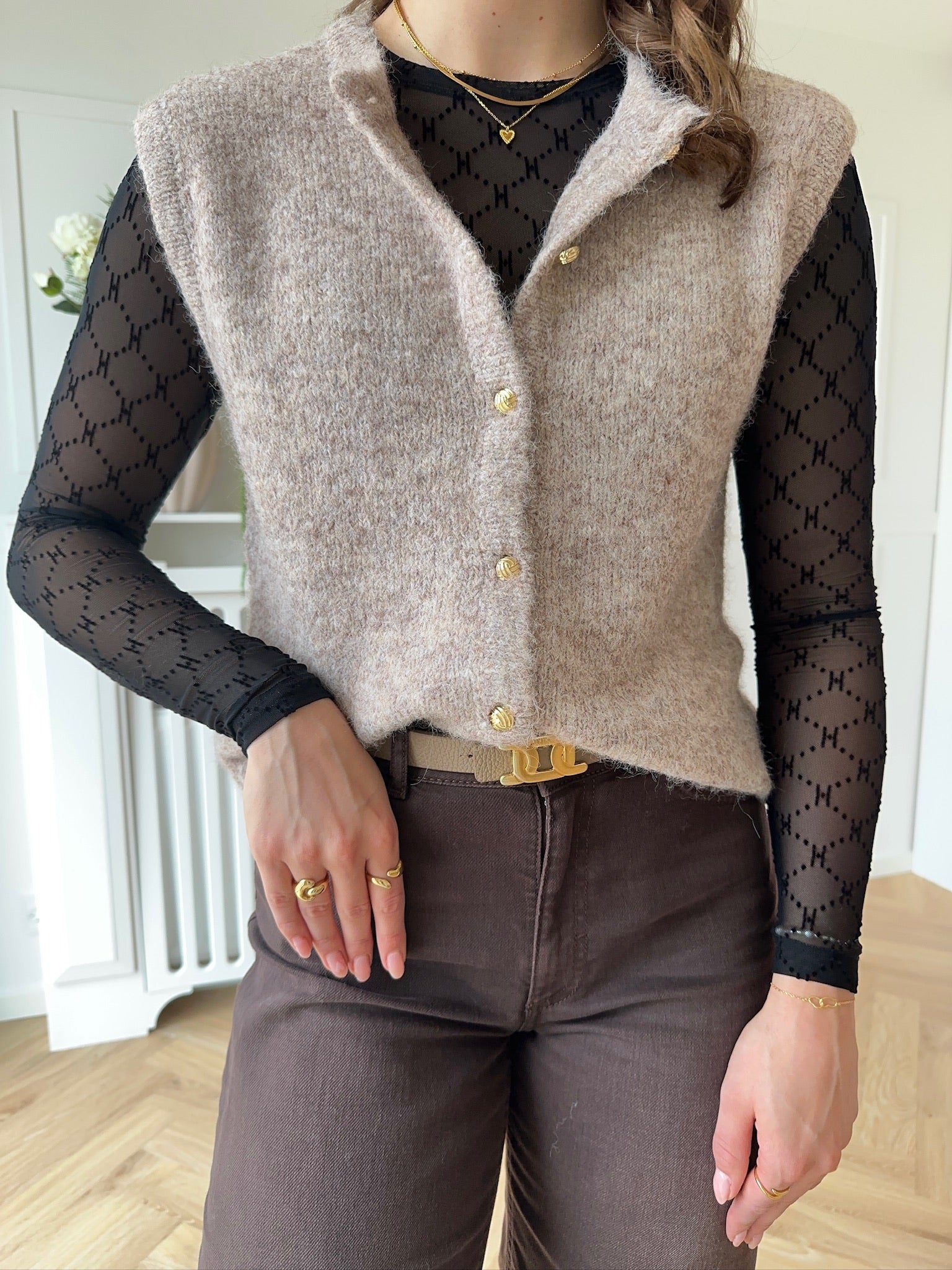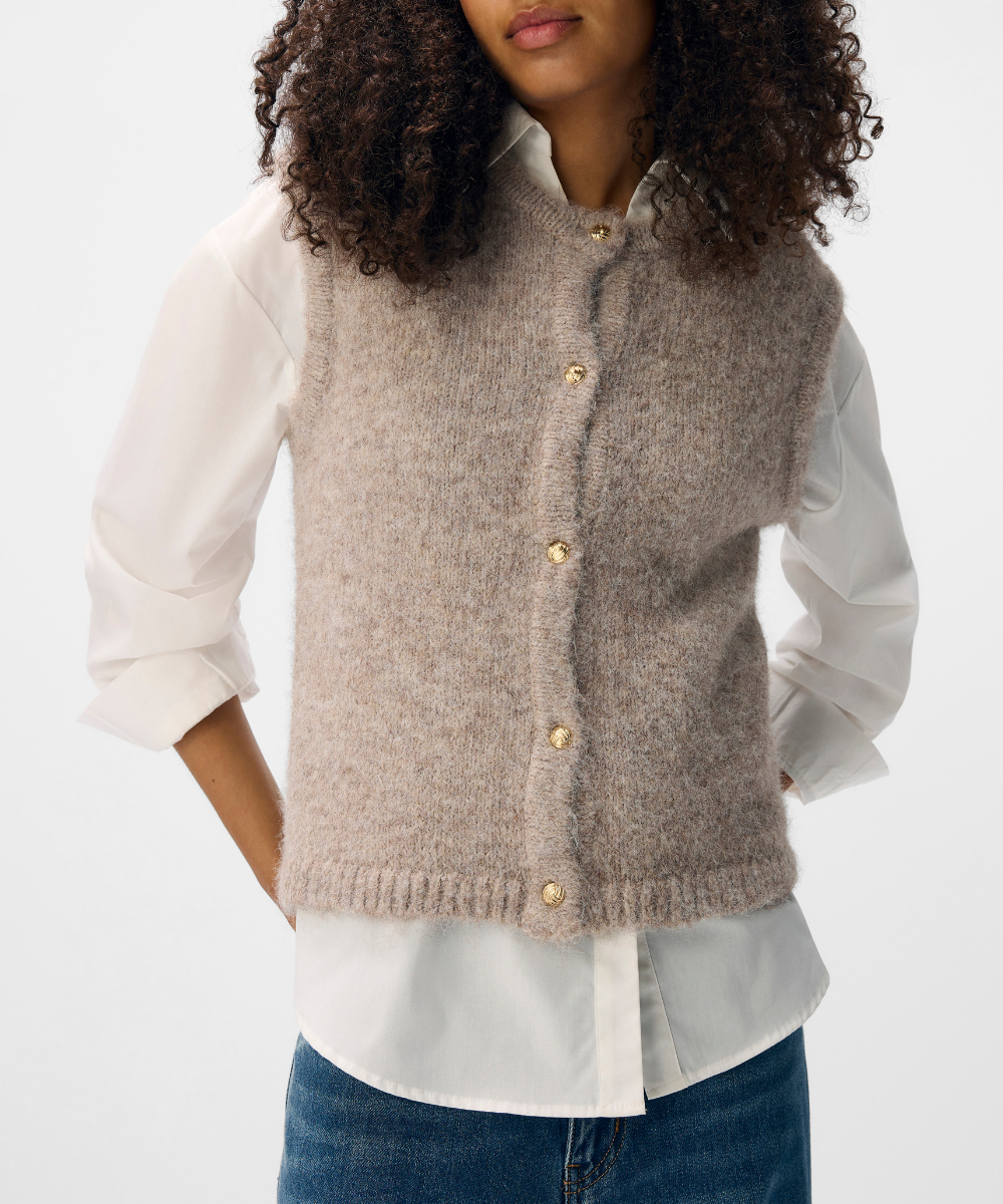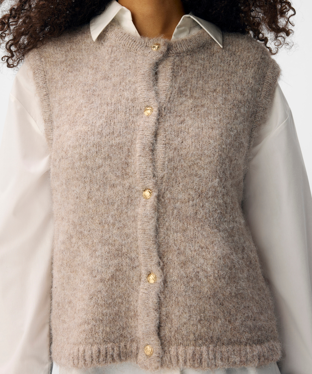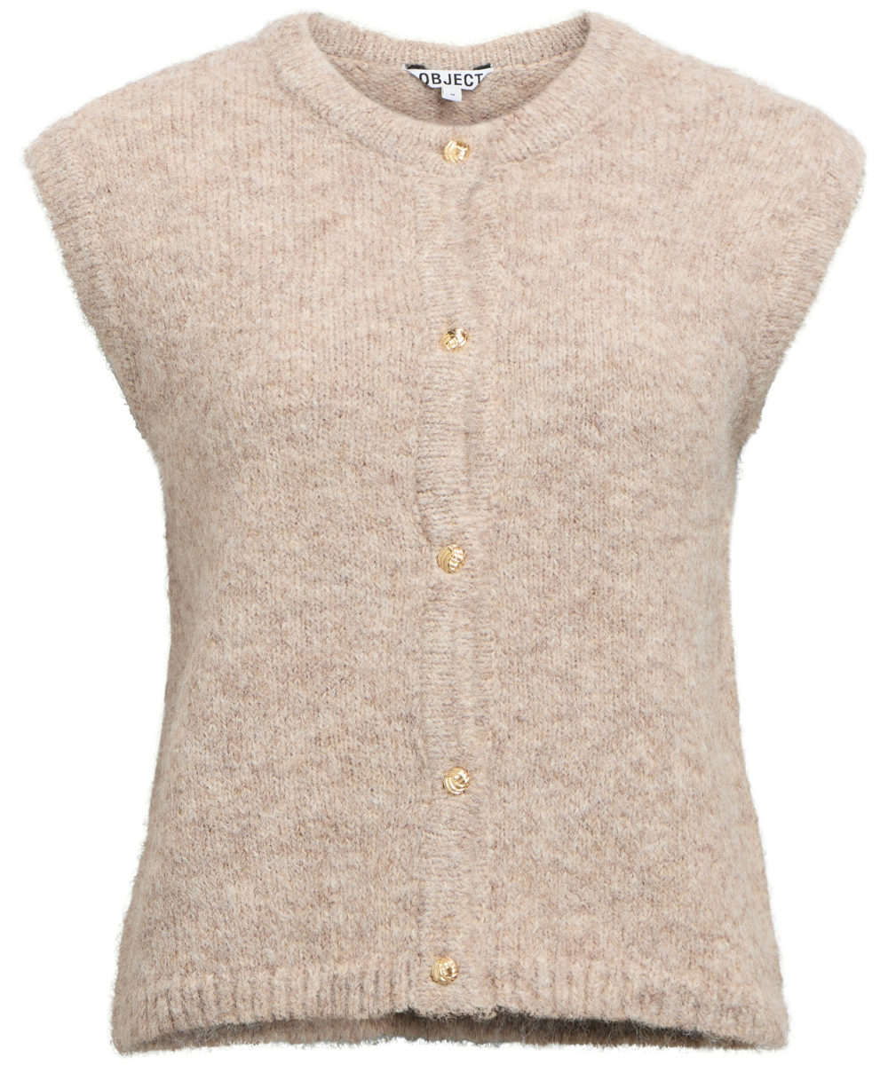 Object Saggia Knit Vest Cardigan Humus Melange NOA25