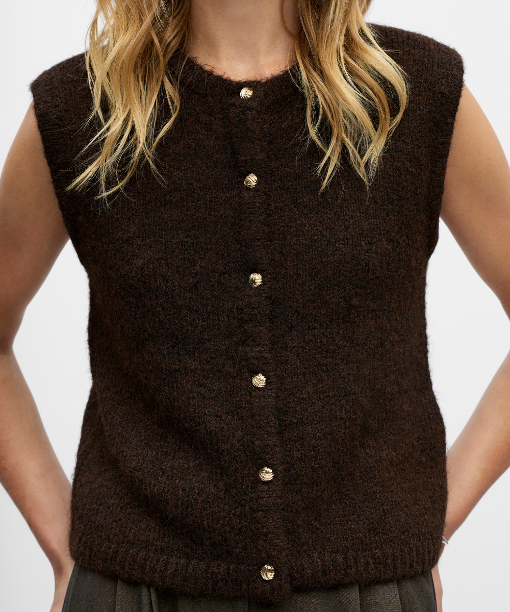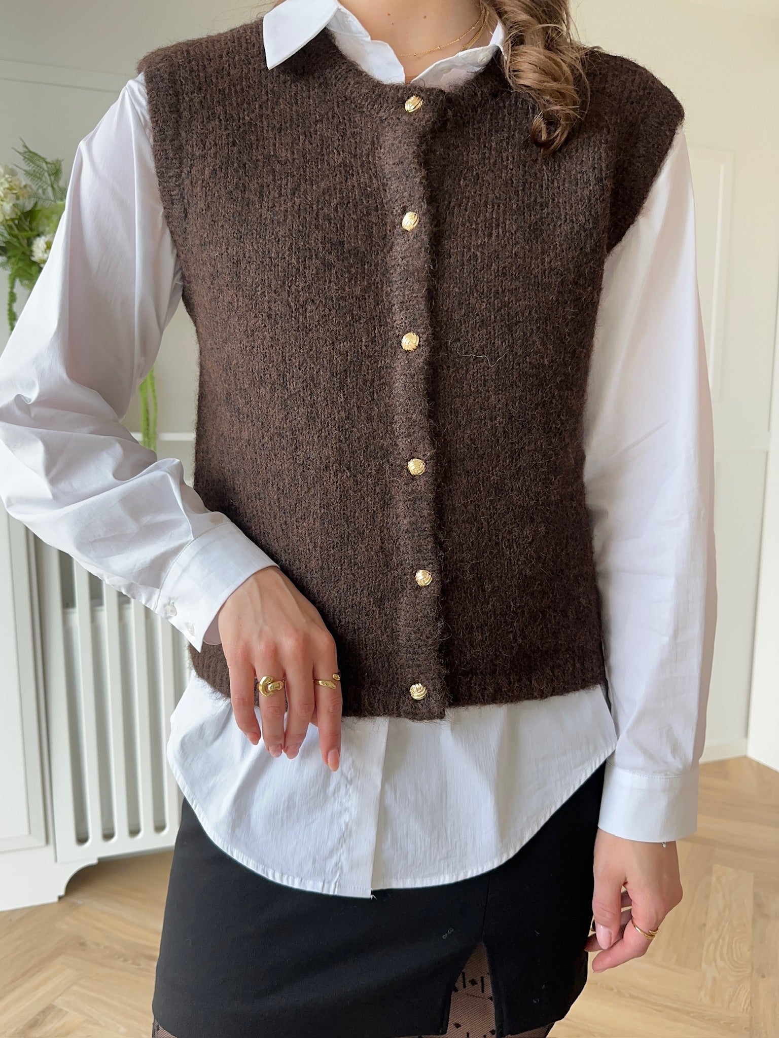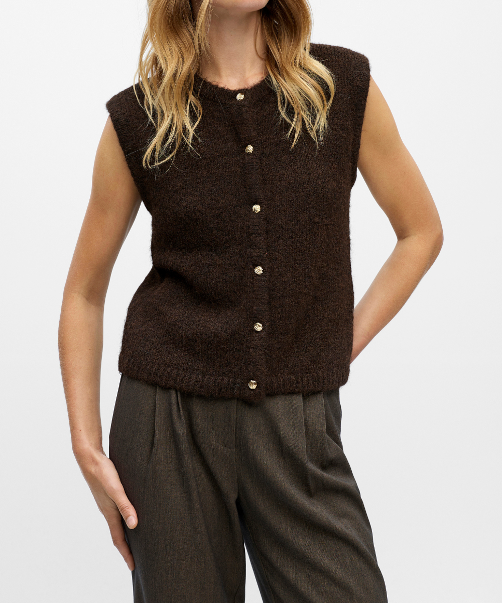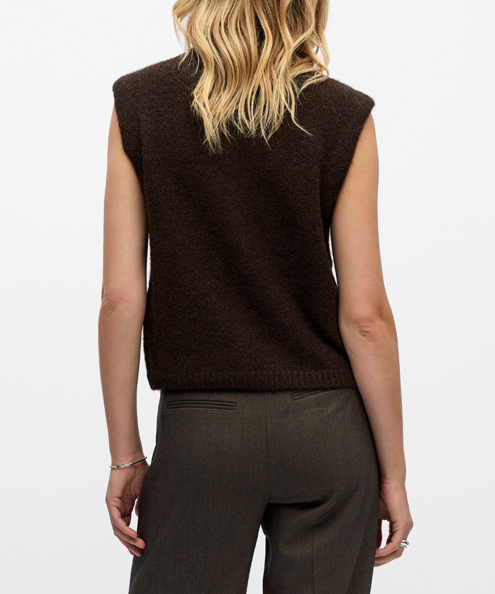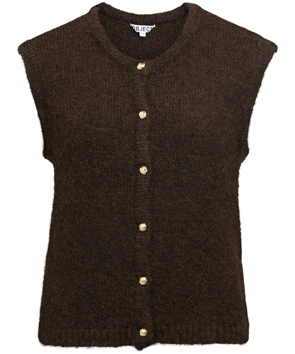 Object Saggia Knit Vest Cardigan Seal Brown Melange NOA25