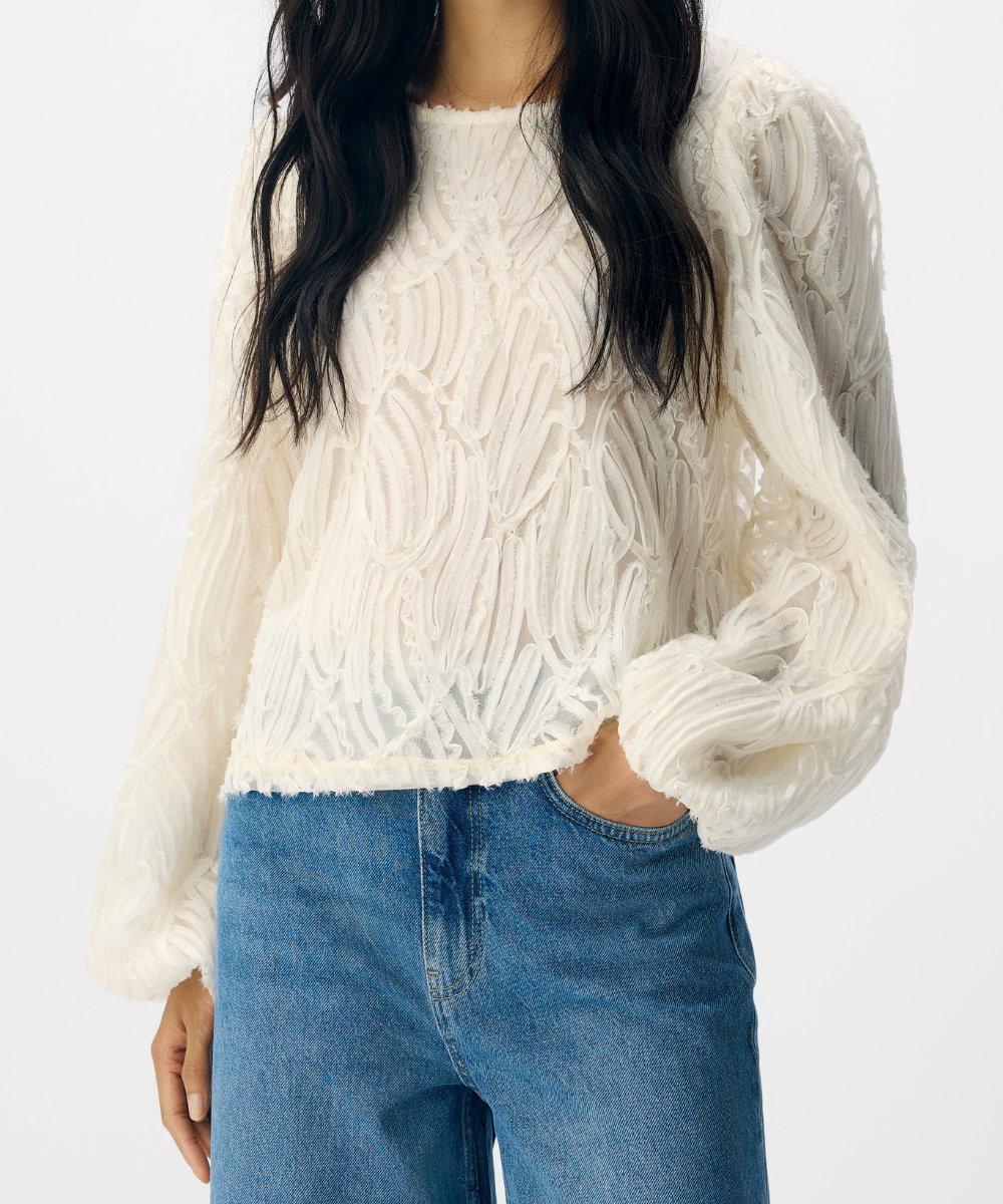 Object Lucie LS O-Neck Top White Sand NOA25