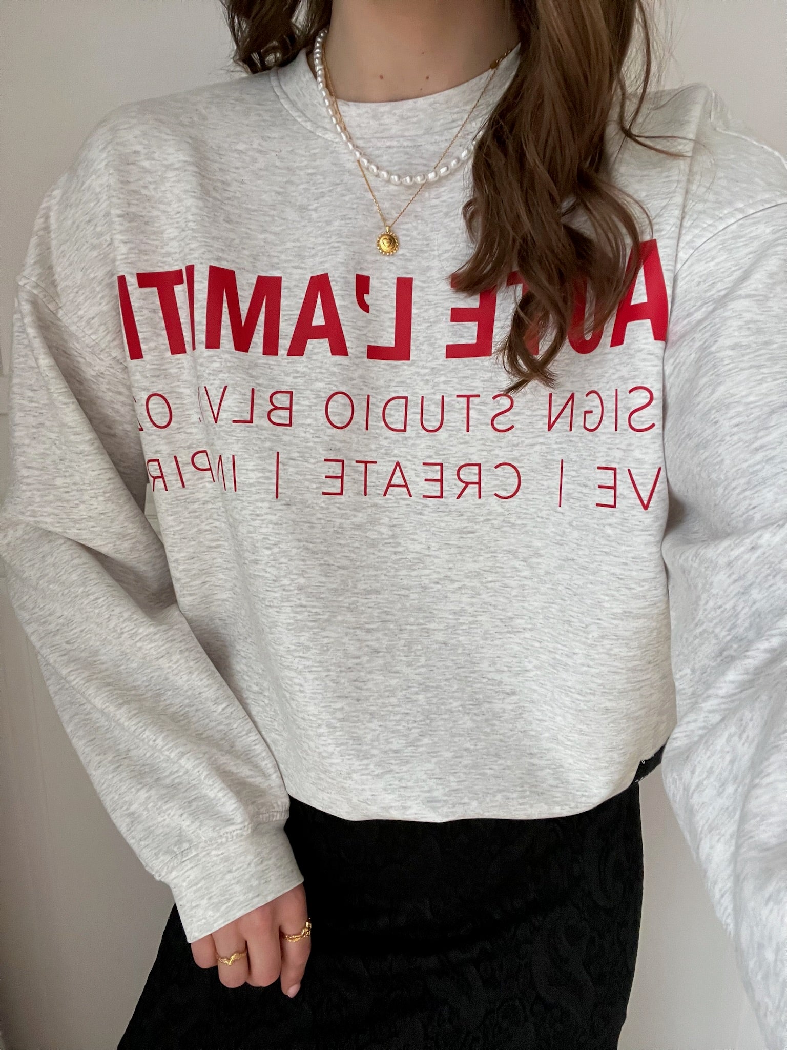 Haute L'Amitié Studio Logo Sweatshirt Pearl Melange/Red