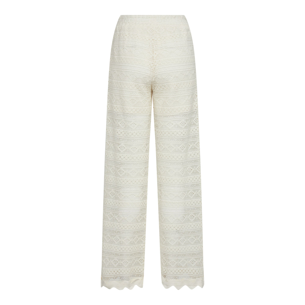 Smuk bukser med blonder. Bukserne er halvgennemsigtige, men øverst er de forret, således de ikke er gennemsigtige der. De har vidde i benene og de er supersmukke at style sammen med den matchende bluse.