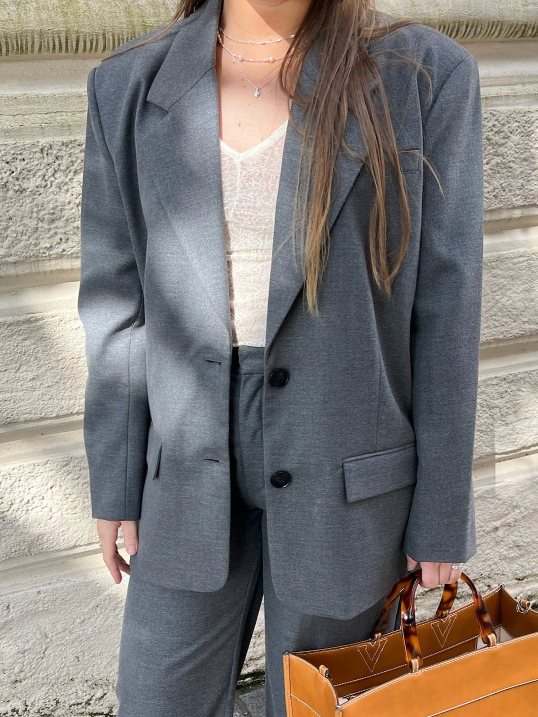 Paula Melange Blazer Dark Grey Melange fra Gestuz