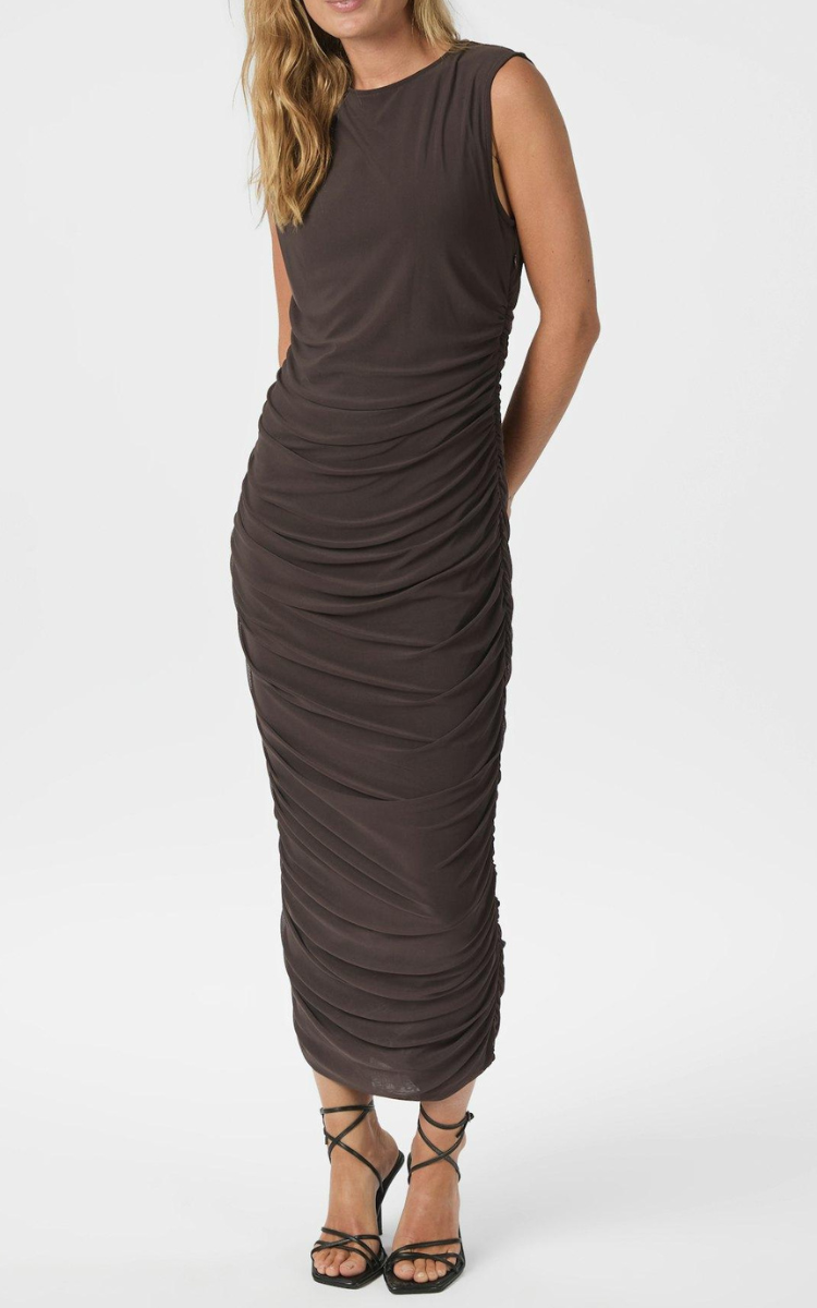 Corilina Solid Mesh Kjole Brown fra Neo Noir