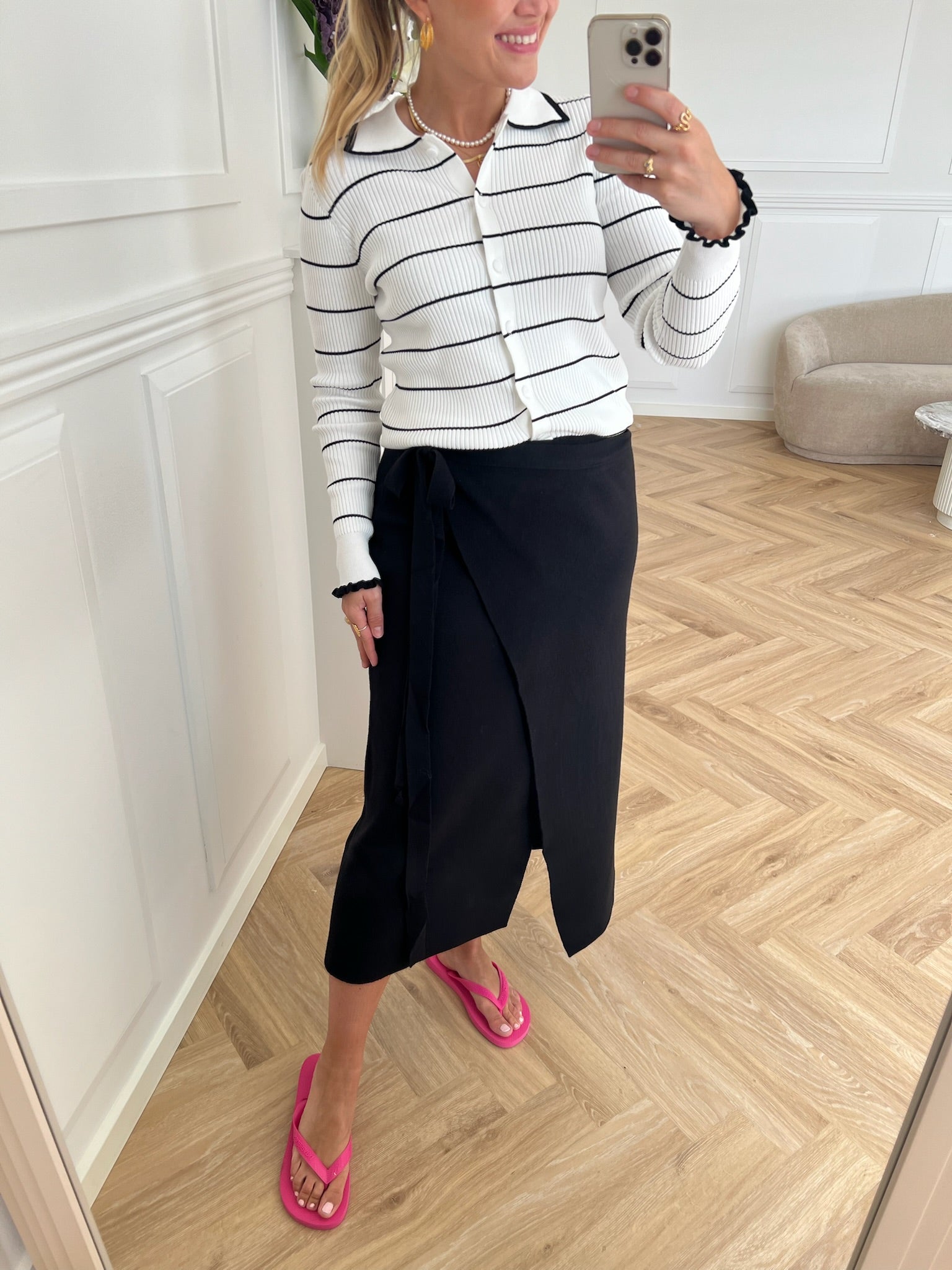 Rio Stripe Knit Cardigan White fra Neo Noir