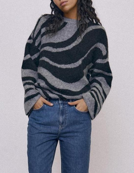 Diana LS Knit Bluse Medium Grey Melange/Zebra Black fra Object