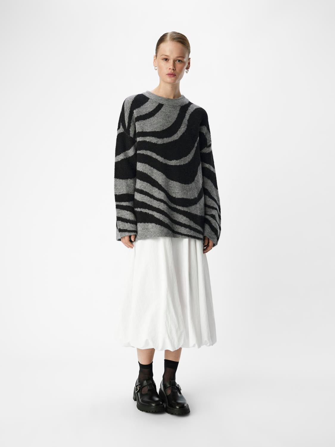 Object Diana LS Knit Bluse Medium Grey Melange/Zebra Black NO25