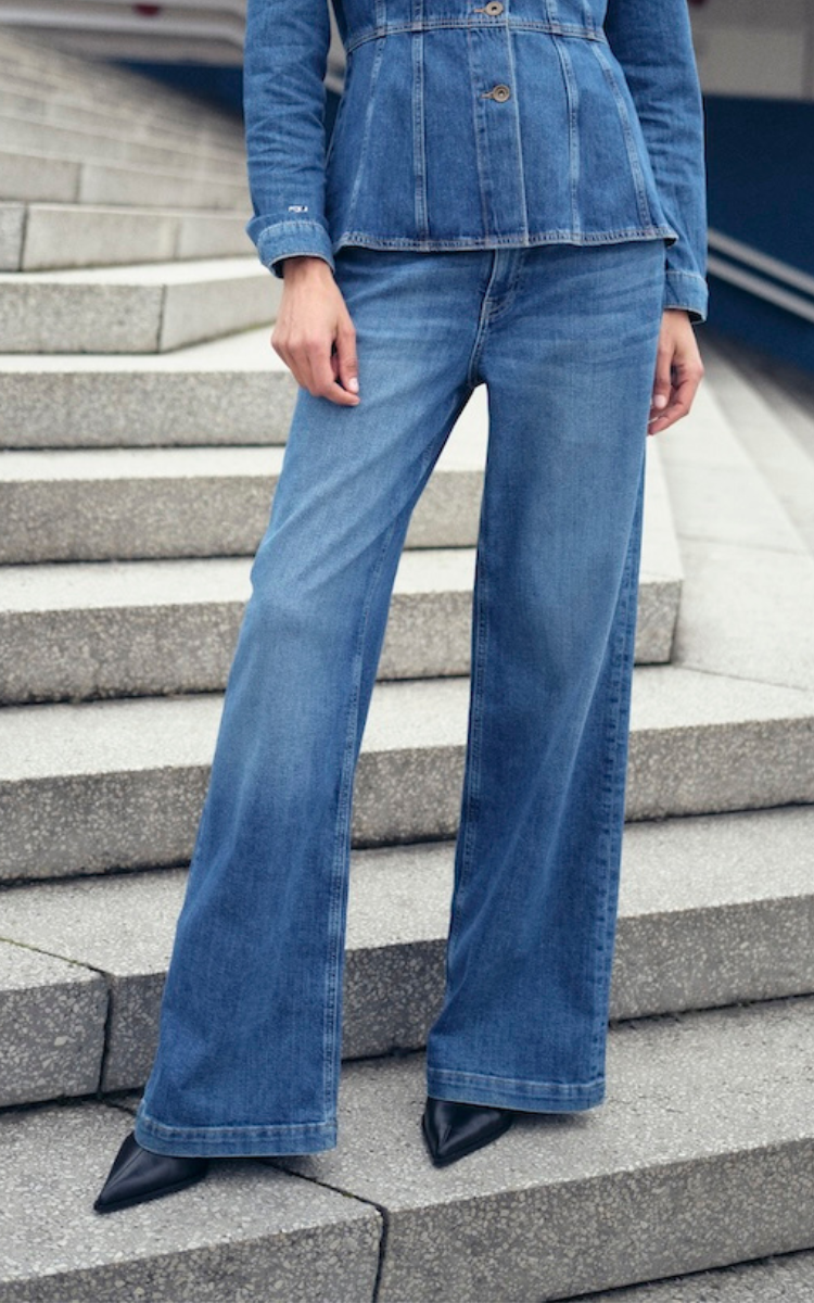 Only Juicy HW Wide Leg Dot Denim Jeans Dark Blue Denim NO25