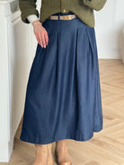 Anya Denim Pleat Nederdel Navy Denim fra Co'Couture