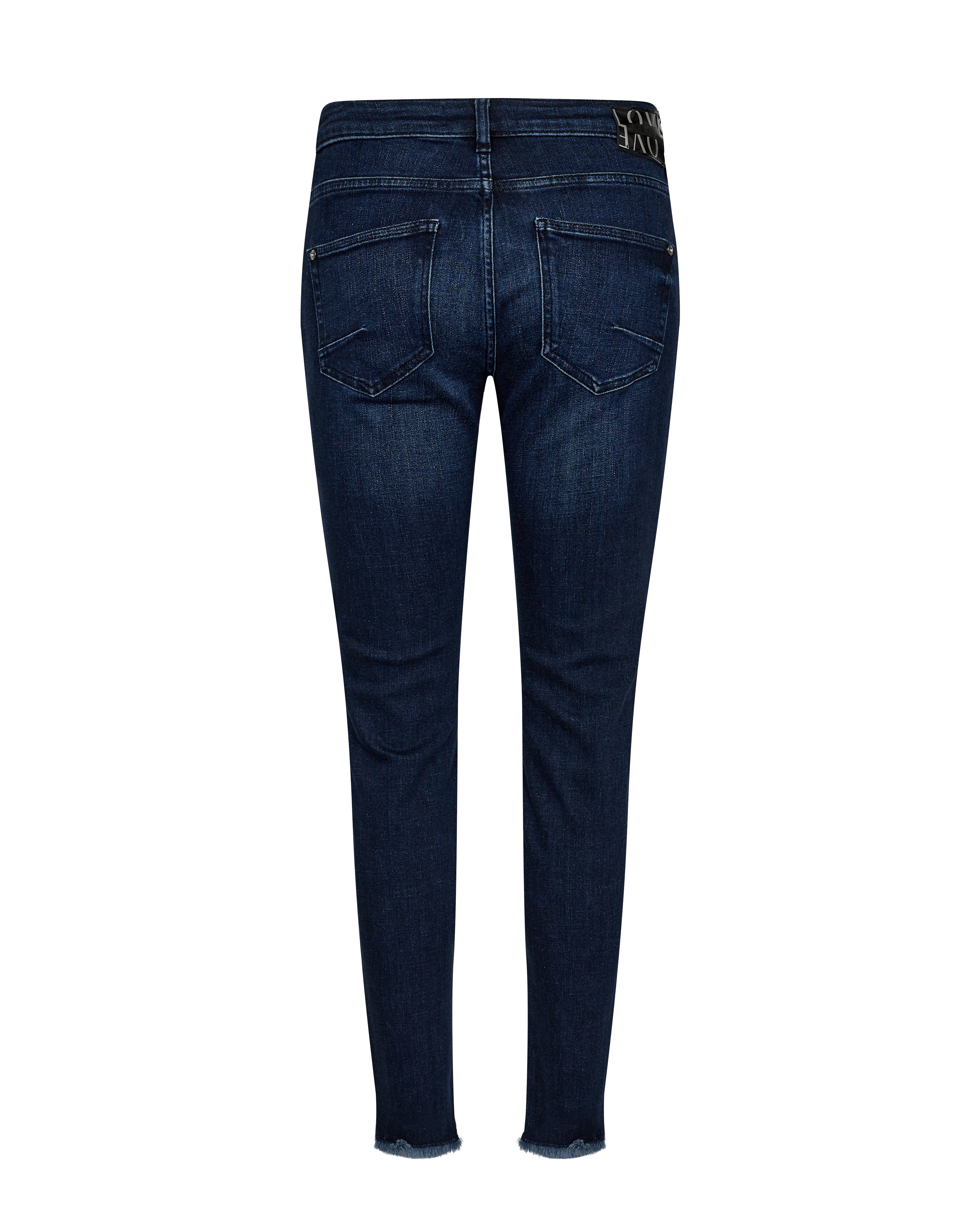 Smarte jeans med et sejt tvist i form af en rå kant nederst. Disse jeans er designet i en tætsiddende pasform og de har lav talje samt ankellængde. Som en ekstra detalje er der nittedetaljer ved lommerne.