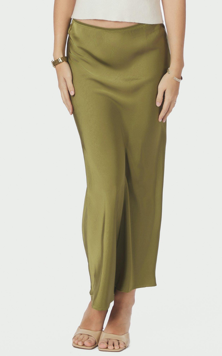 Vicky Heavy Sateen Nederdel Sage Green fra Neo Noir
