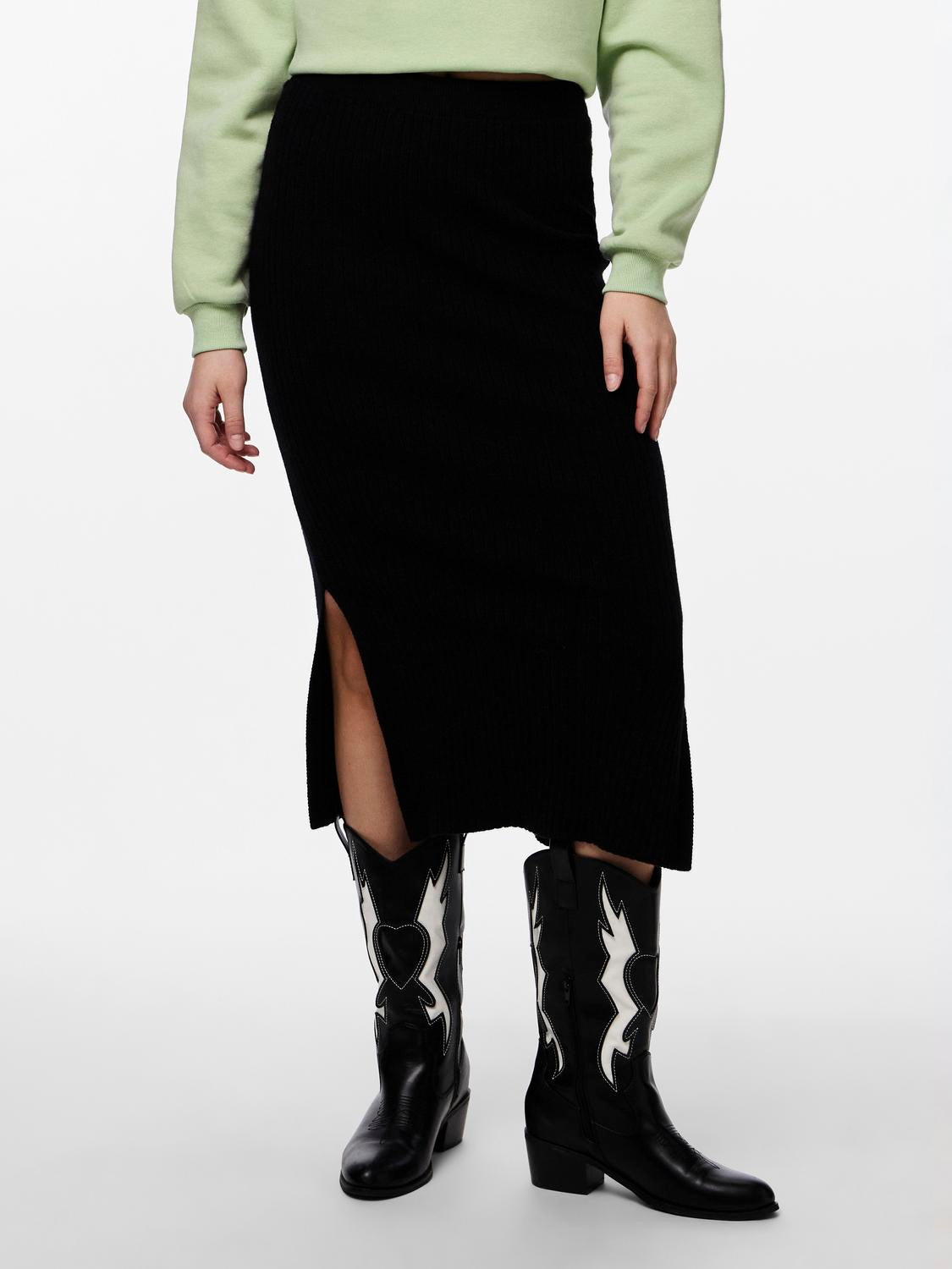 Crista HW Midi Strik Nederdel Black fra Pieces