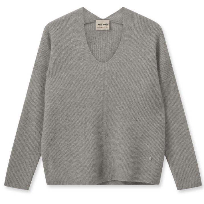 Thora V-Neck Strik Grey Melange fra Mos Mosh