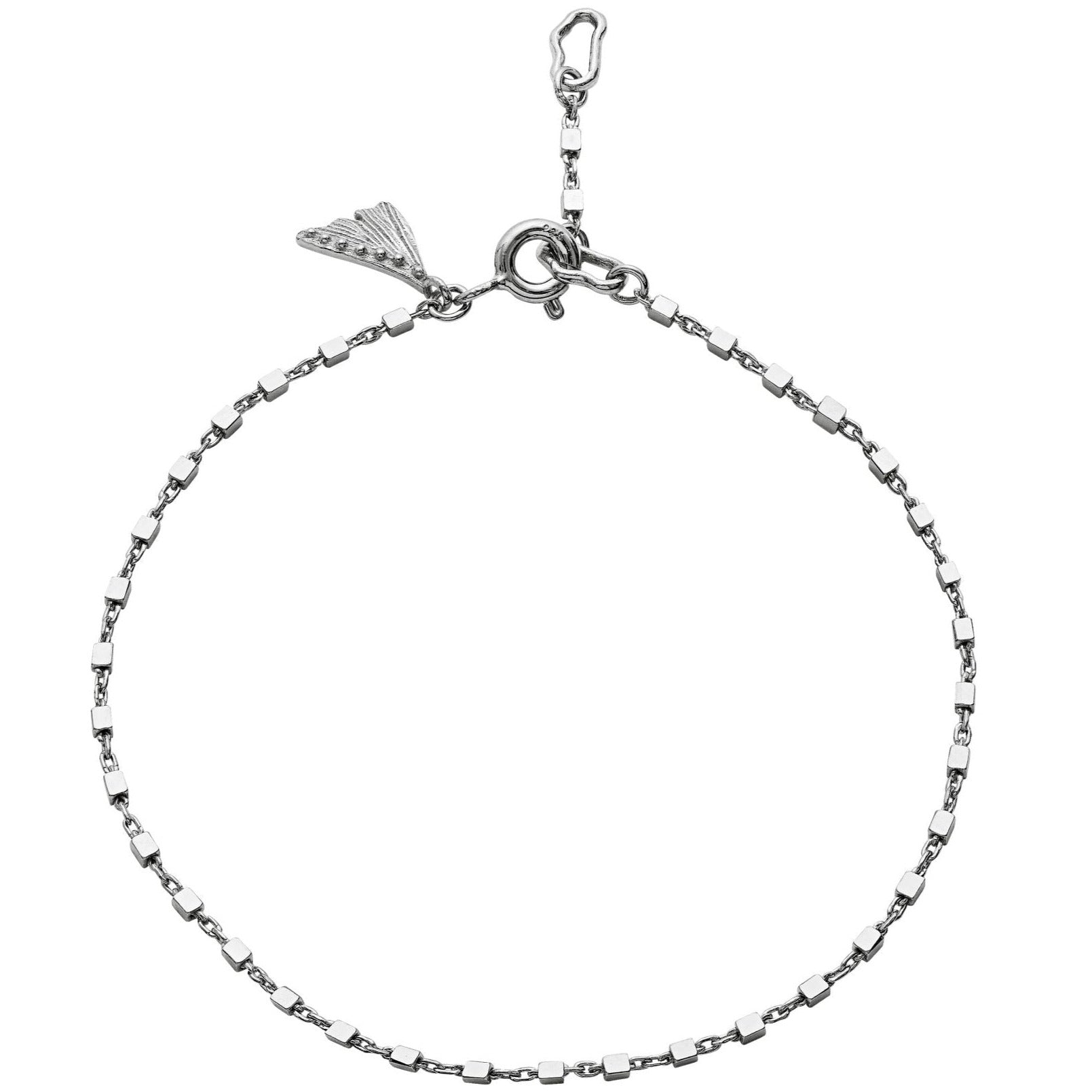 Super fint armbånd fra Maanesten. Armbåndet har små firkantede dele og en natsværmer-vinge som vedhæng.