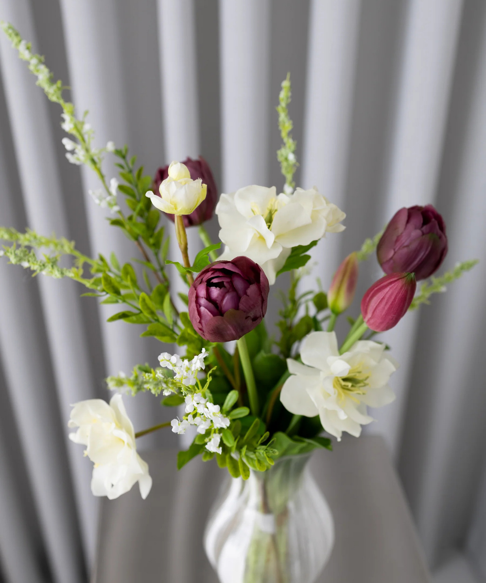 Bloom Objects Kunstige Fyldte Tulipaner Blomsterbuket Bordeuax
