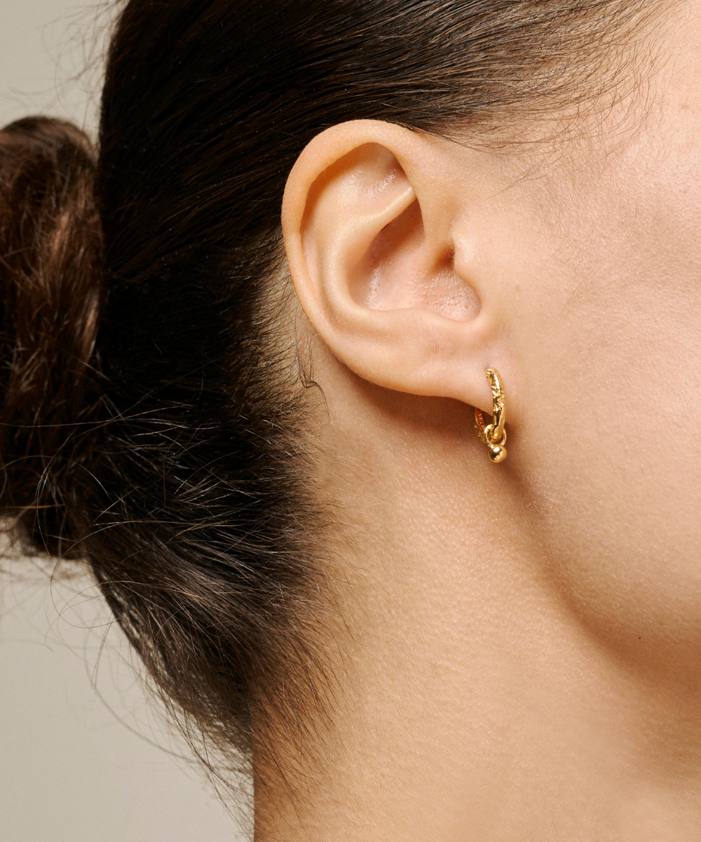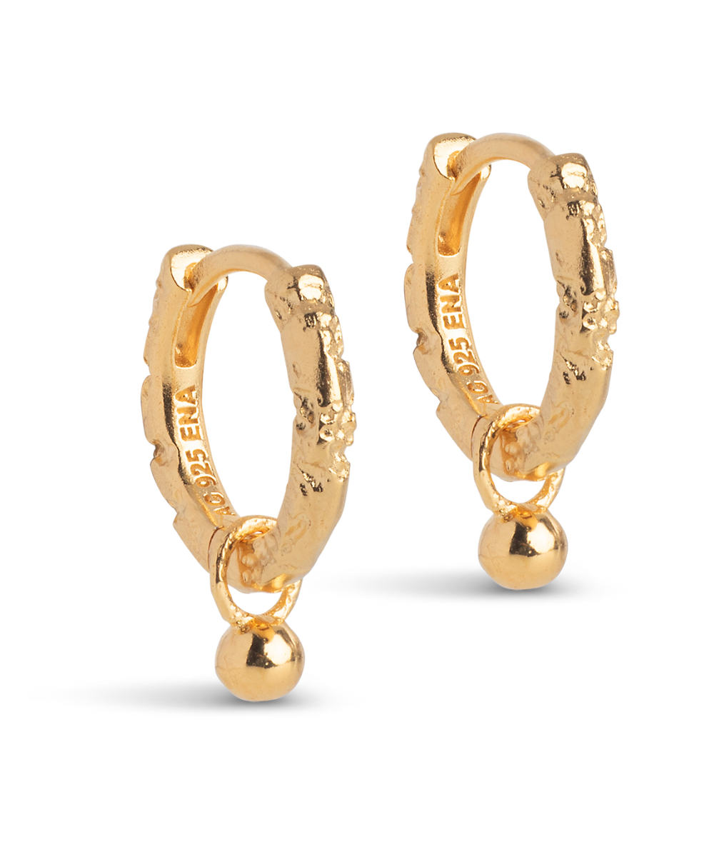 Belle øreringene er et par flotte, små hoops med vedhæng. De har en struktureret overflade, der giver et naturligt udtryk. Vedhænget kan også tages af, således den enkle hoop anvendes alene.