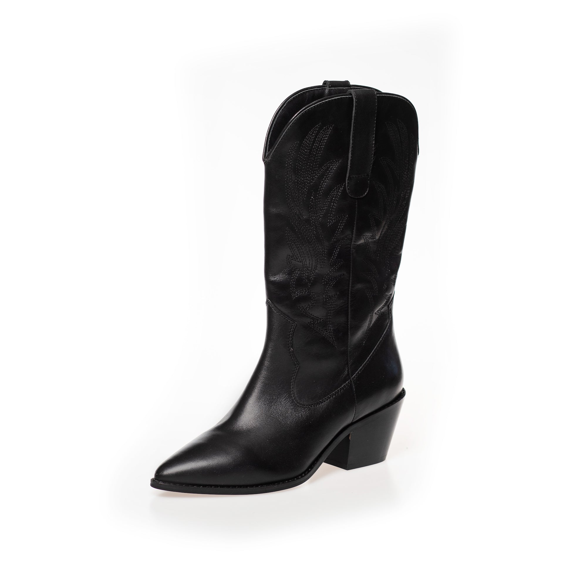 On A Dream er et par western inspireret støvler med tone-i-tone broderet mønster, spids snude og en bred hæl. Støvlerne har et loose fit, og remme i siderne så de er nemme at tage på.