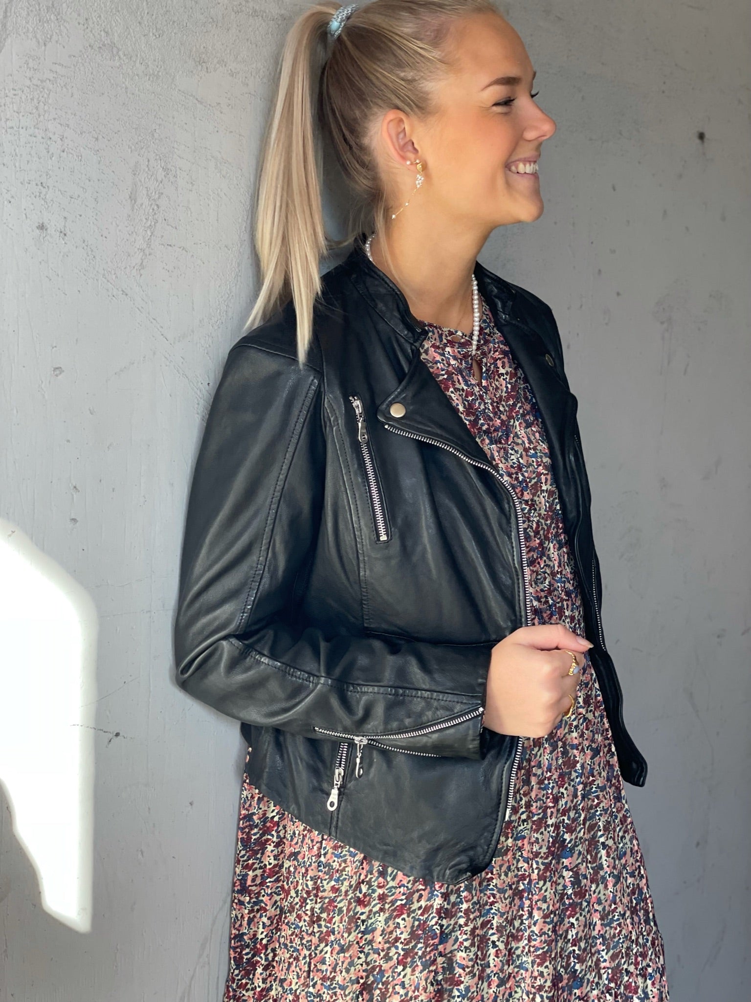 Modellen er 172 høj, og bruger str. 36.