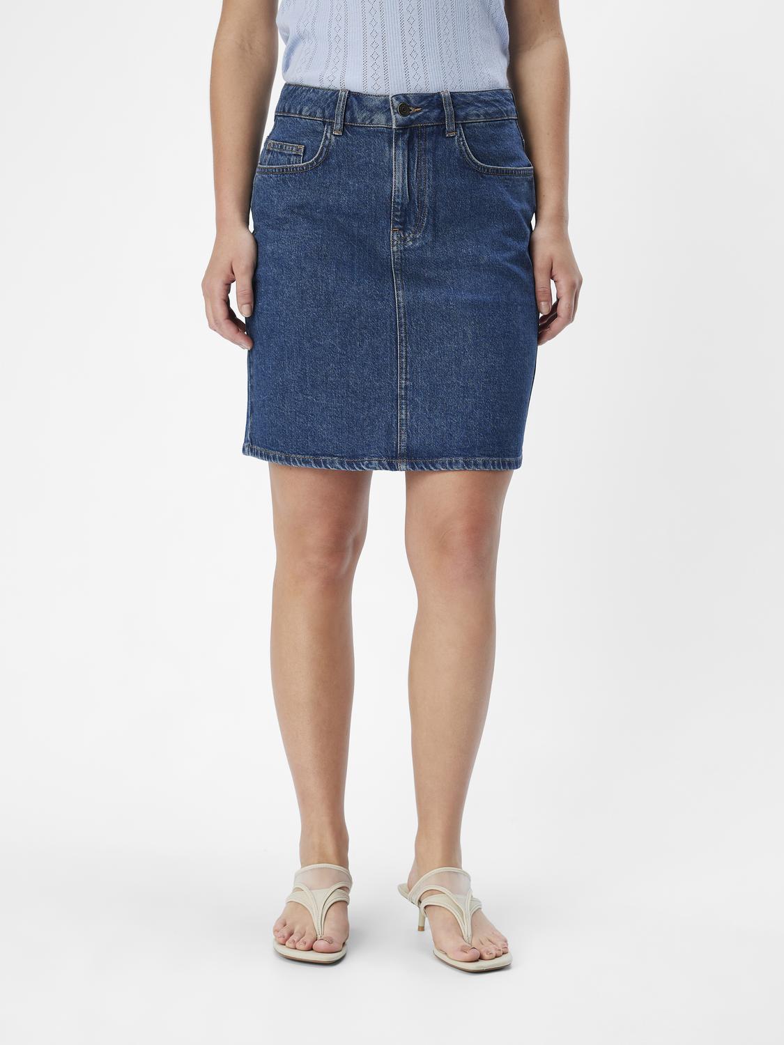Ellen HW Short Denim Nederdel Medium Blue Denim fra Object
