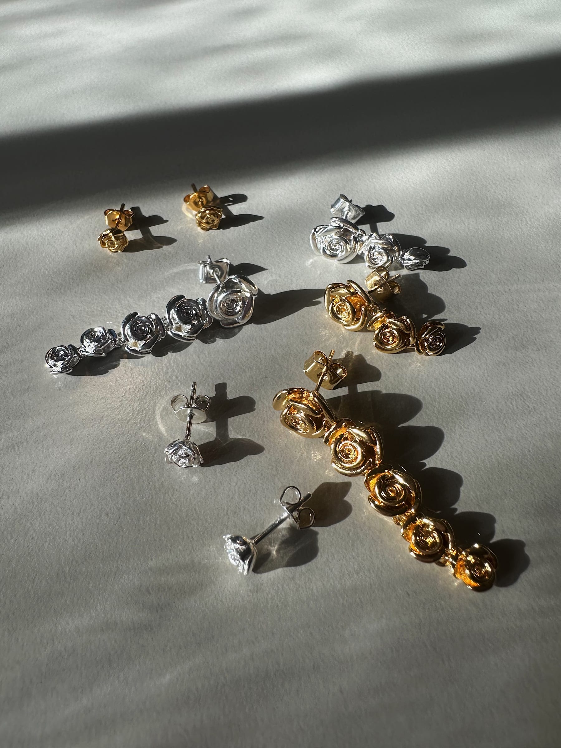 Utrolig smuk ørering, der er formet som små roser på række. Den er smuk at style sammen med den matchende Rose Stud.