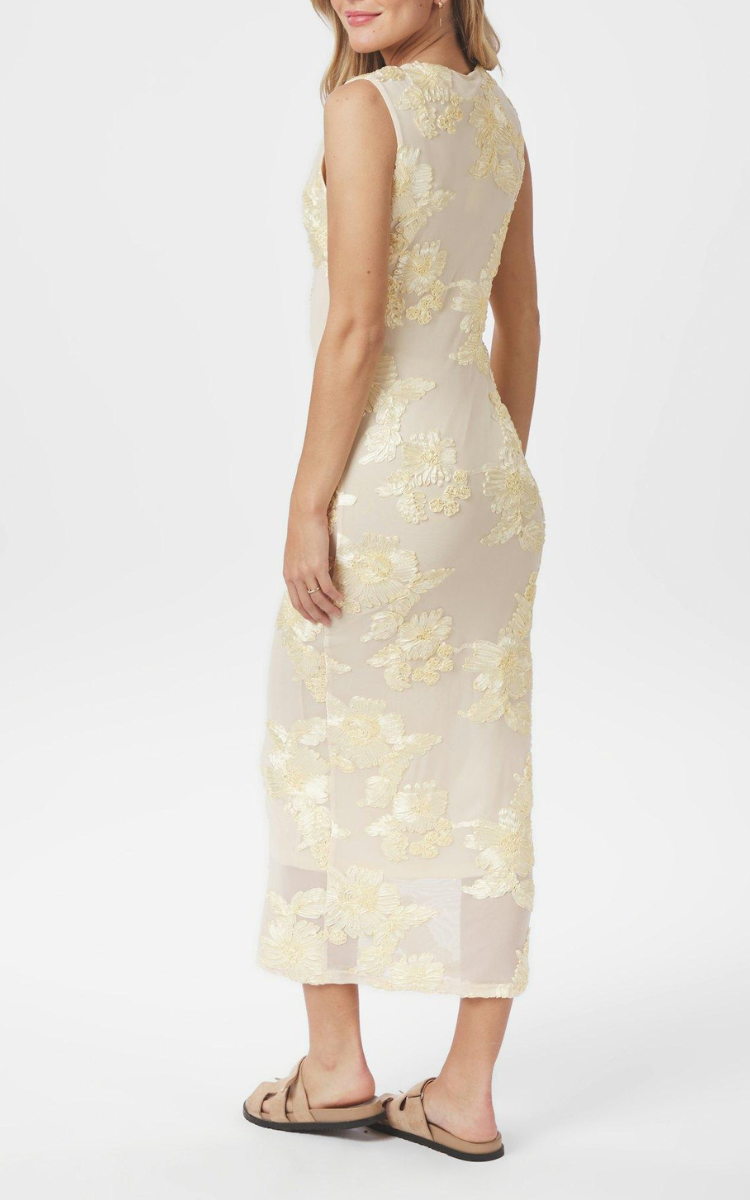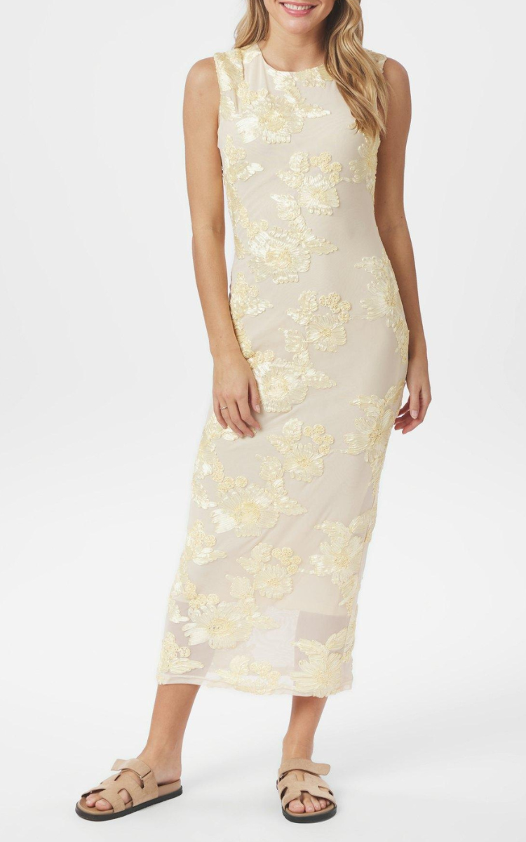 Tiranna Big Flower Mesh Kjole Light Yellow fra Neo Noir