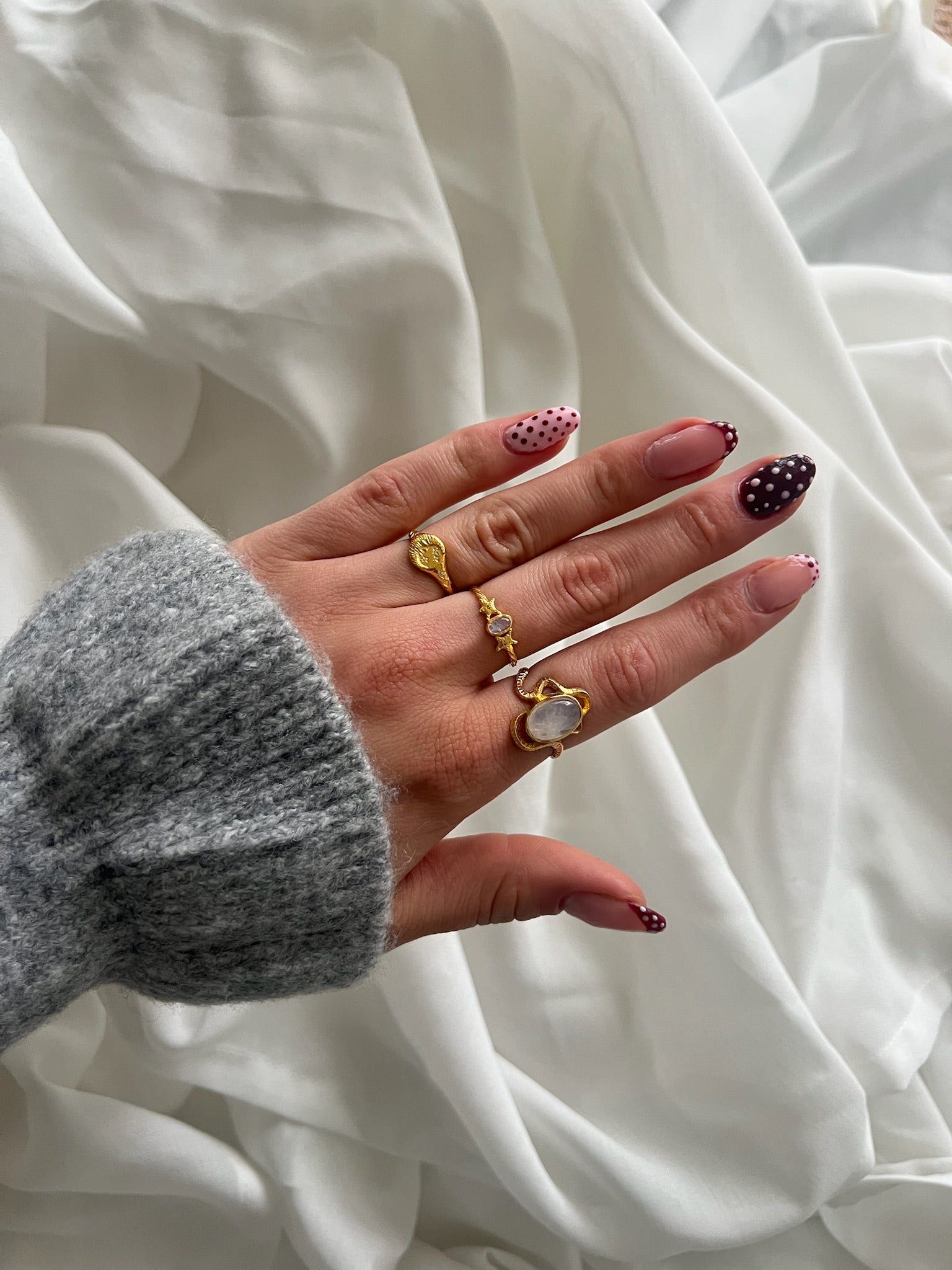 Et af vores meget populære brands er Maanesten, som har en masse fede smykke styles med et eventyrligt og feminine udtryk. Brandet har et godt øje for detaljer og det ses virkelig tydeligt gennem deres smykker. I vores håndplukkede udvalg af Maanesten ringe, kan du finde smukke og unikke ringe - både dem, der fylder på hånden og de mere enkle og feminine af slagsen.