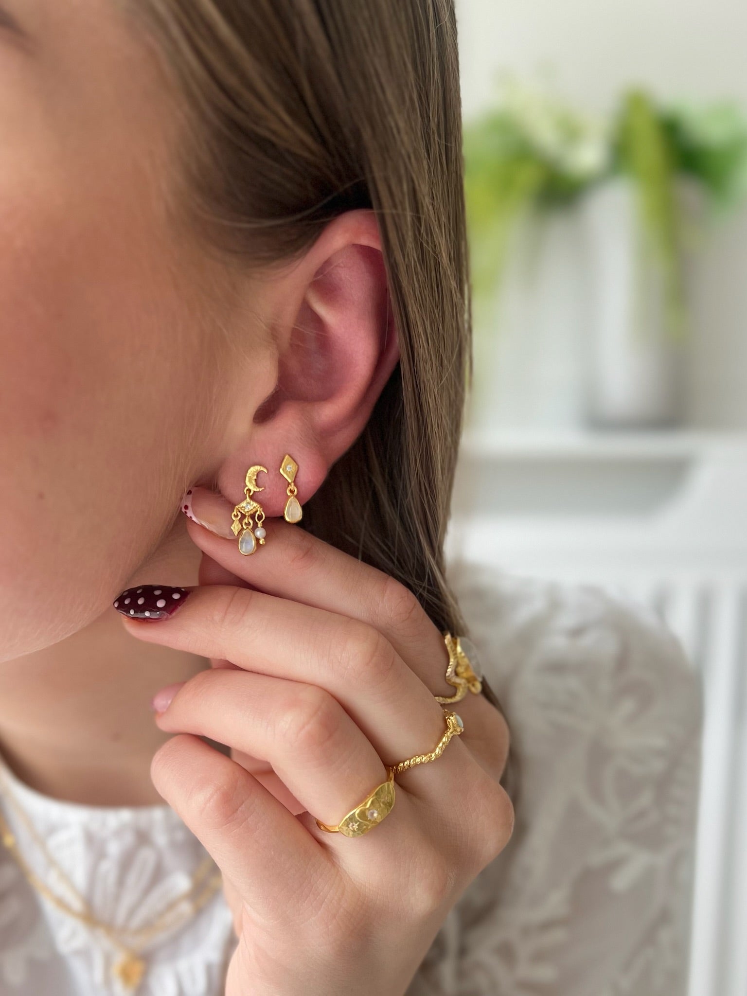- 22 Karat Forgyldt 925 sterling sølv, Ferskvandsperler, Hvid Zirkonia