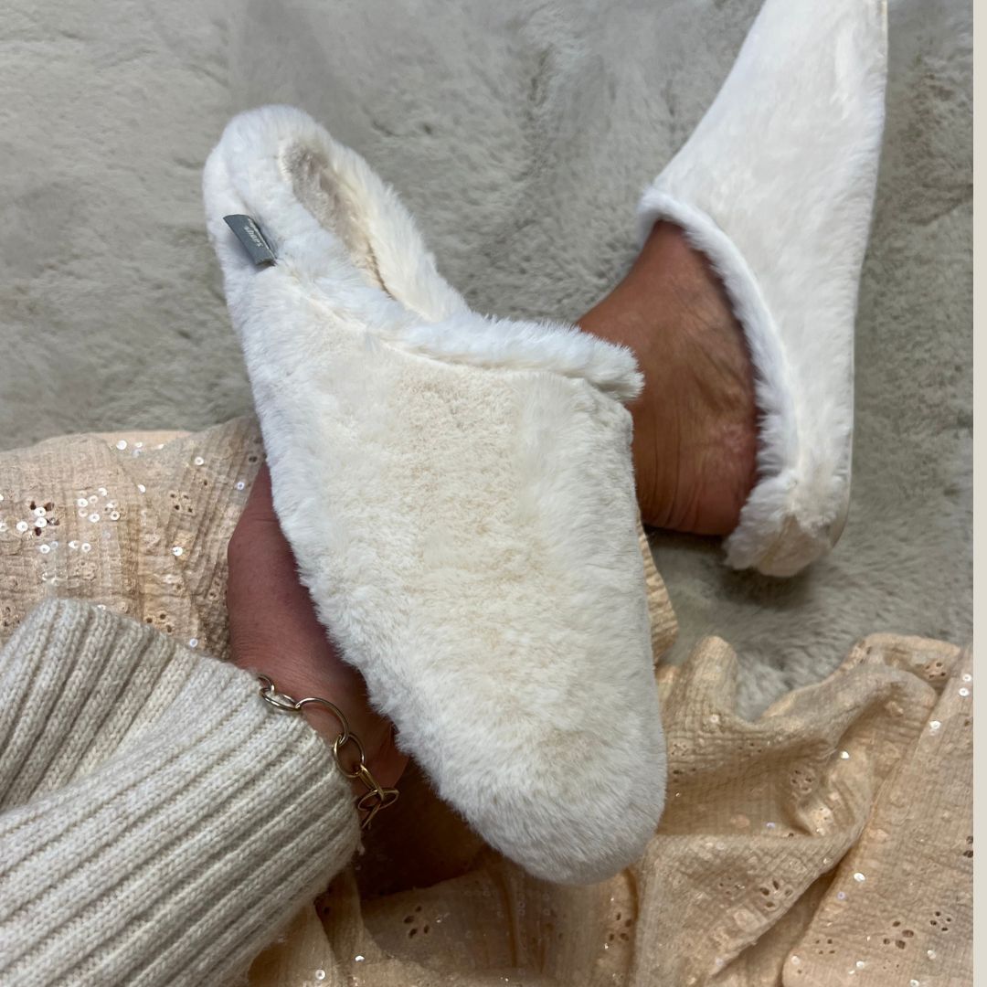 Super fine hjemmesko i en superlækker og blød kvalitet. De har en skøn, off white farve, der passer til alt. Denne model er en slipper-model uden hælkap, hvilket gør den let at komme i og af. Et par uundværlige hjemmesko til den kolde tid.