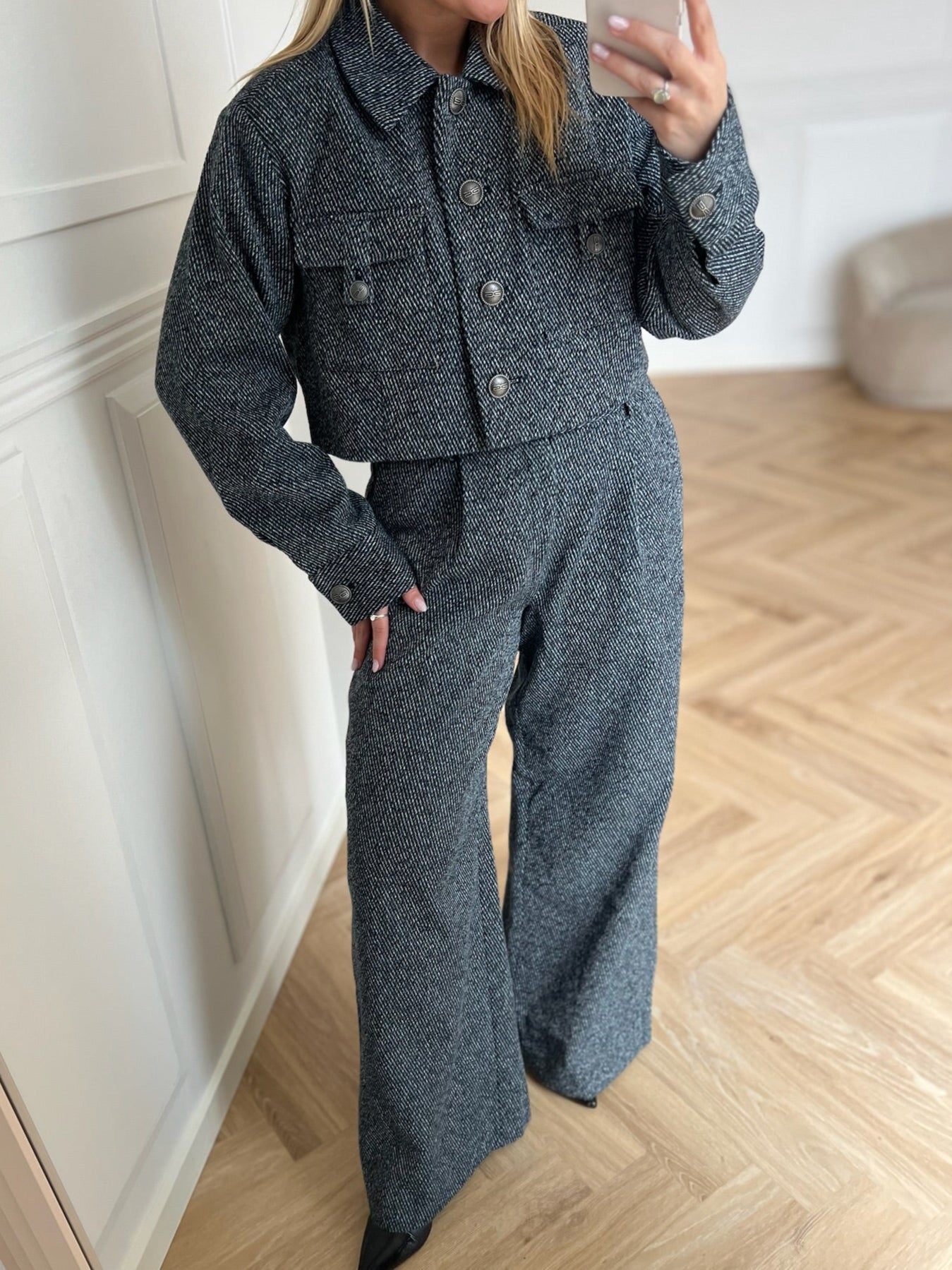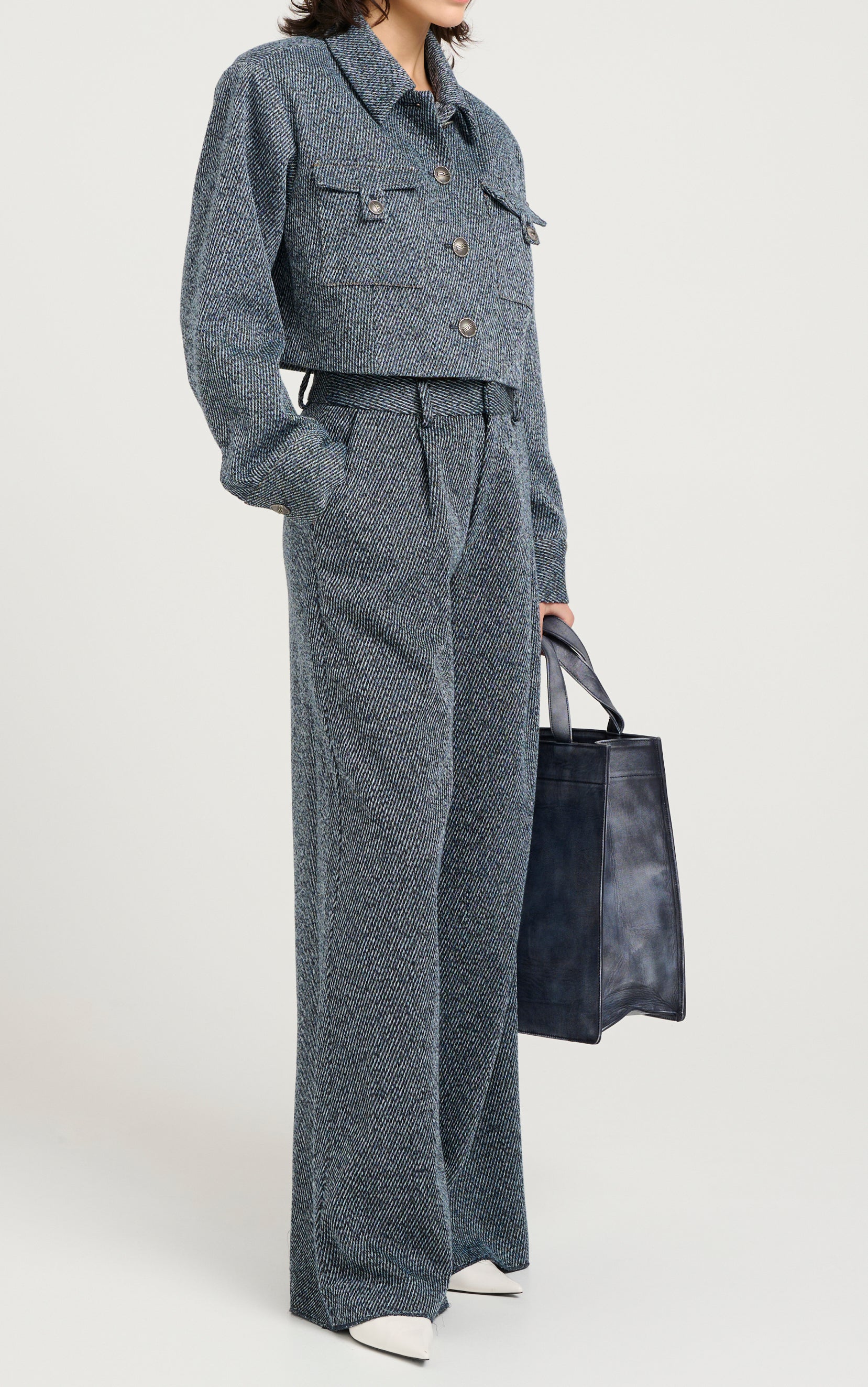 Belma HW Bukser Blue Twill Structure fra Gestuz