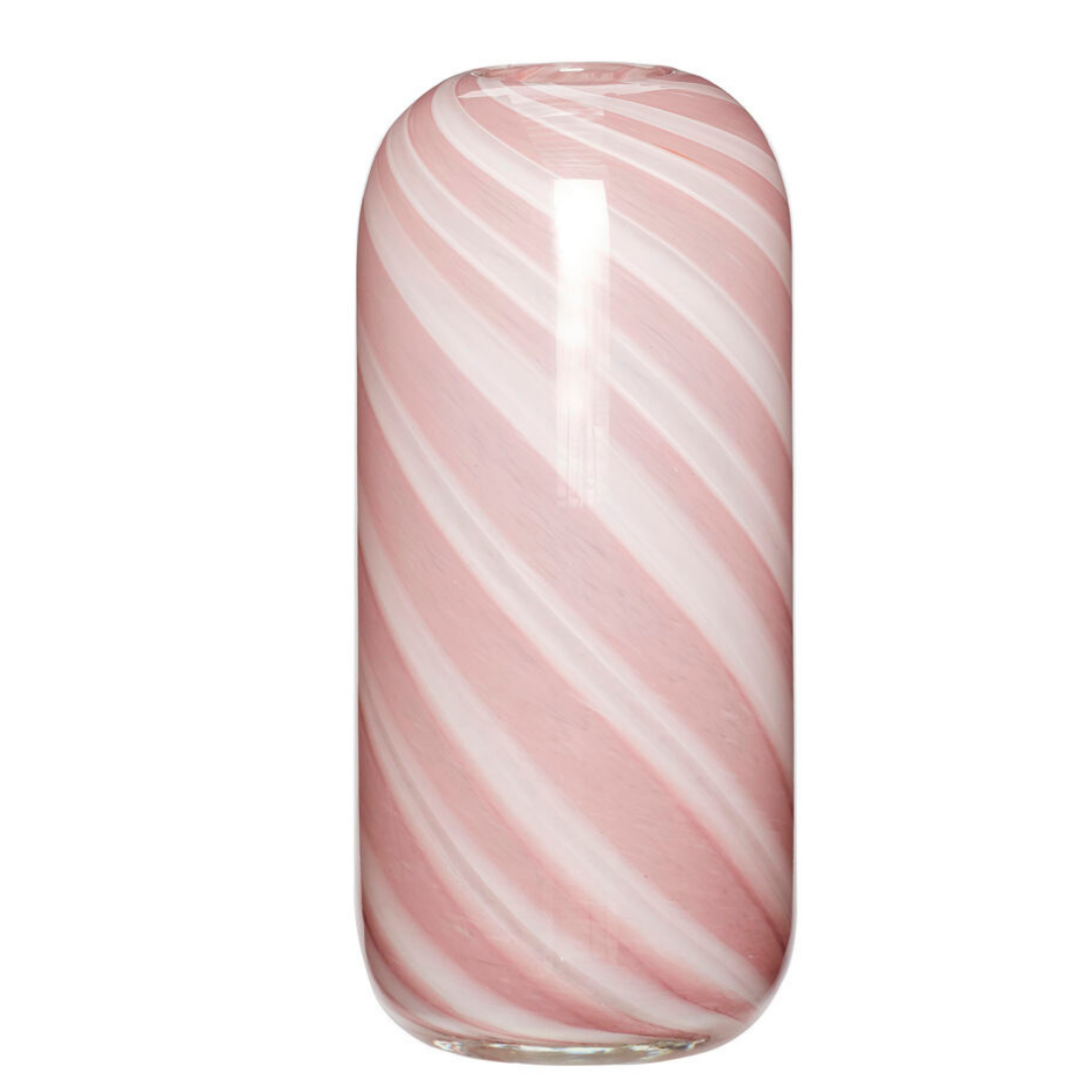 Sød glasvase med twisted mønster i hvid og lyserøde nuancer. Vasen findes i to størrelser.