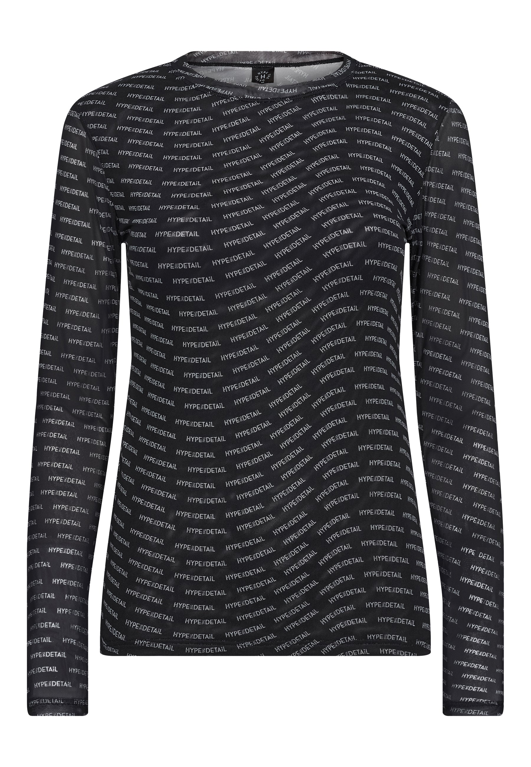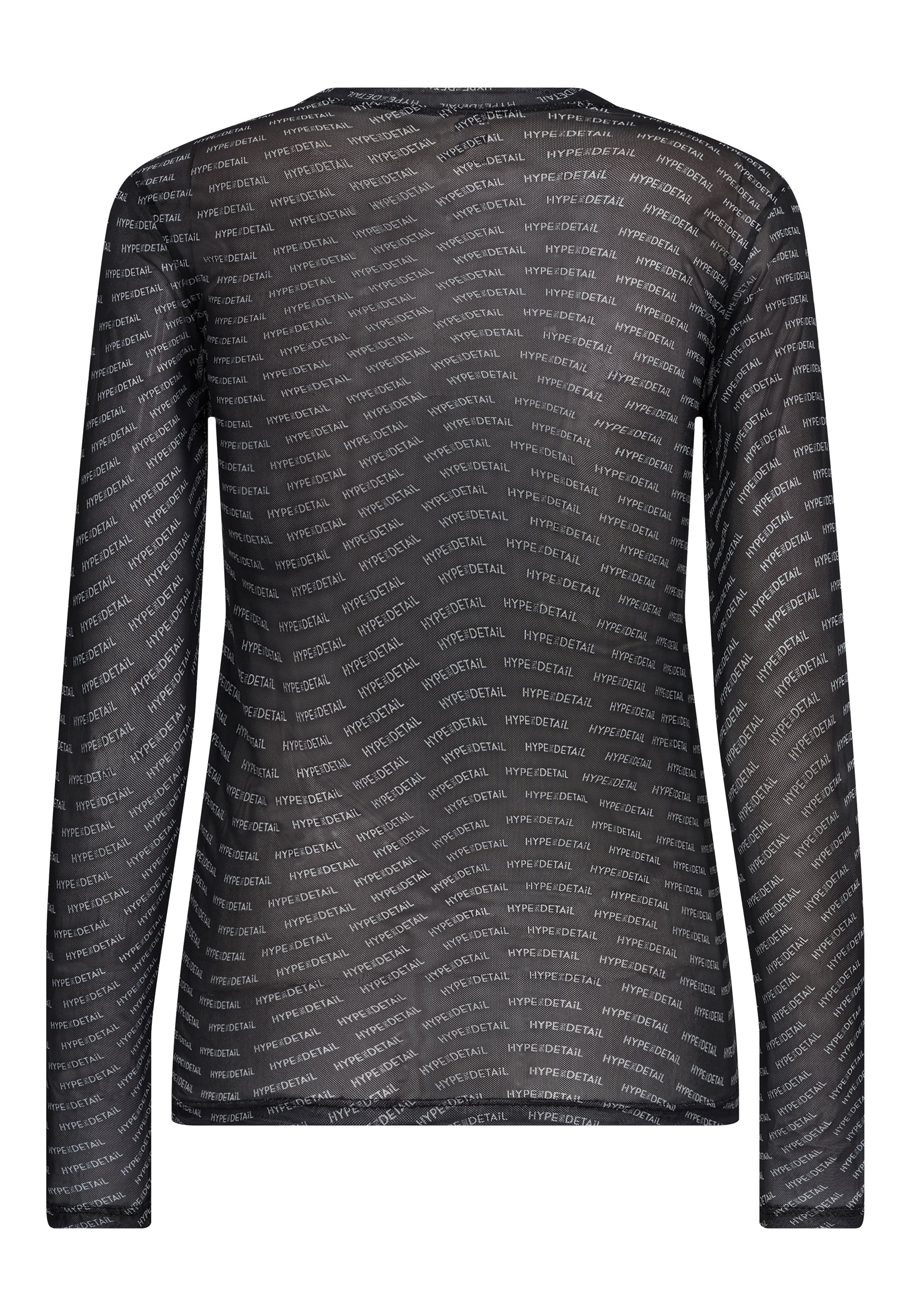 Vildt fin bluse Hype The Detail i sort med hvide logo detaljer. Kvaliteten er en tynd mesh med det klassiske Hype The detail logo trykt på hele blusen. Blusen har rund hals og lange ærmer.