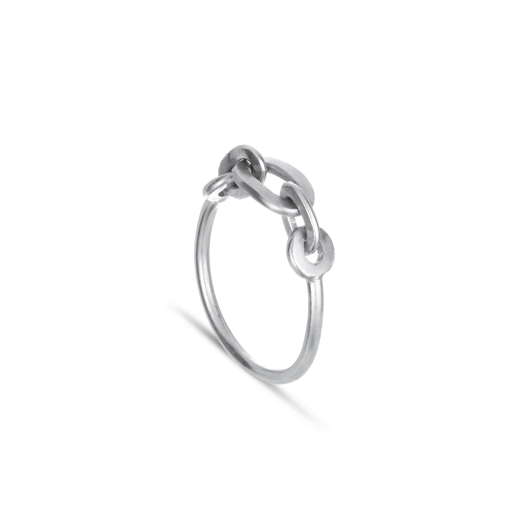 Cool fingerring i sterling sølv med kædedetalje foran. Ringen er i en mat kvalitet og kan både styles alene eller sammen med andre ringe.