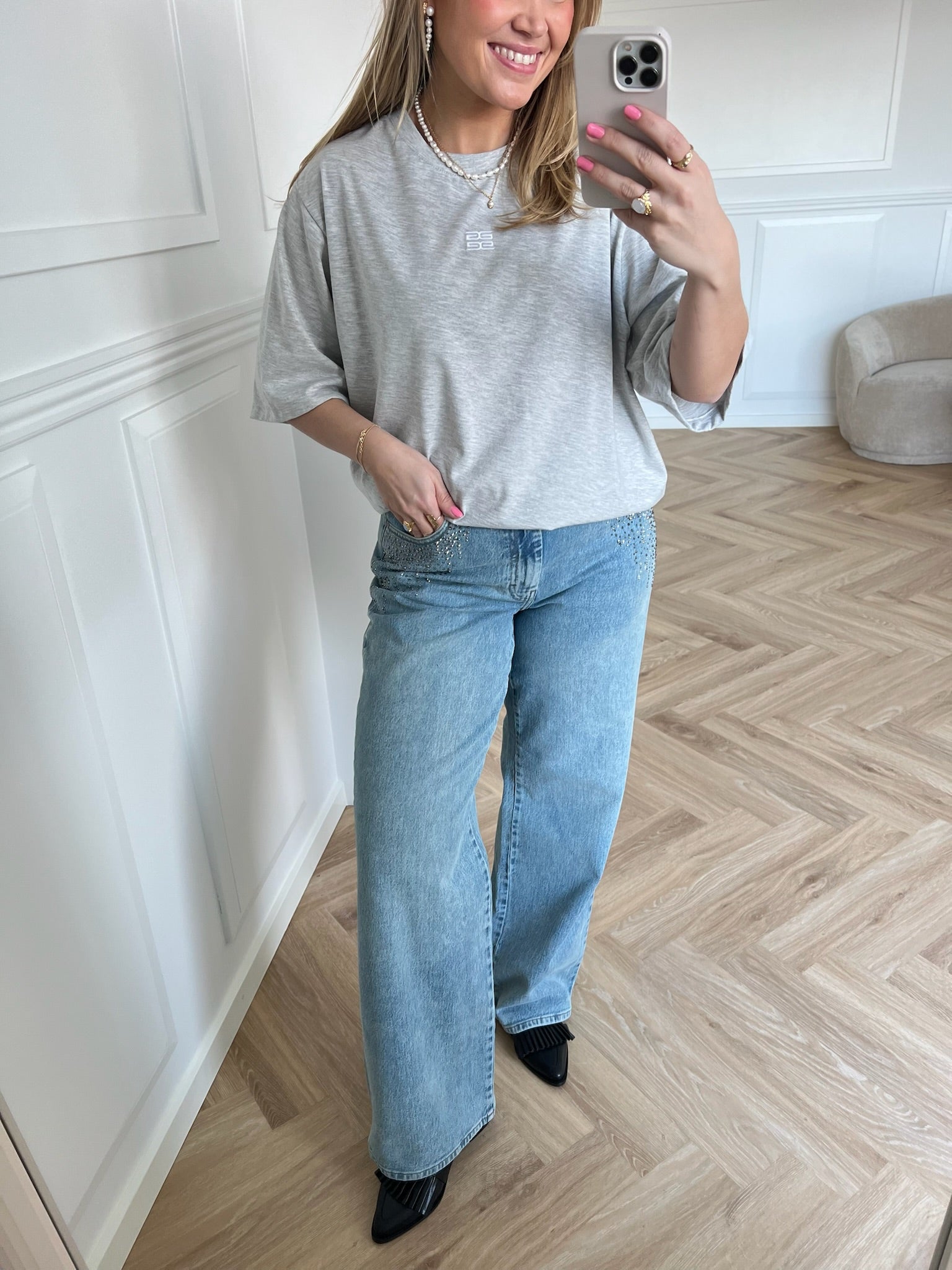 Modellen er iført str. 27 og hun er 165 cm høj