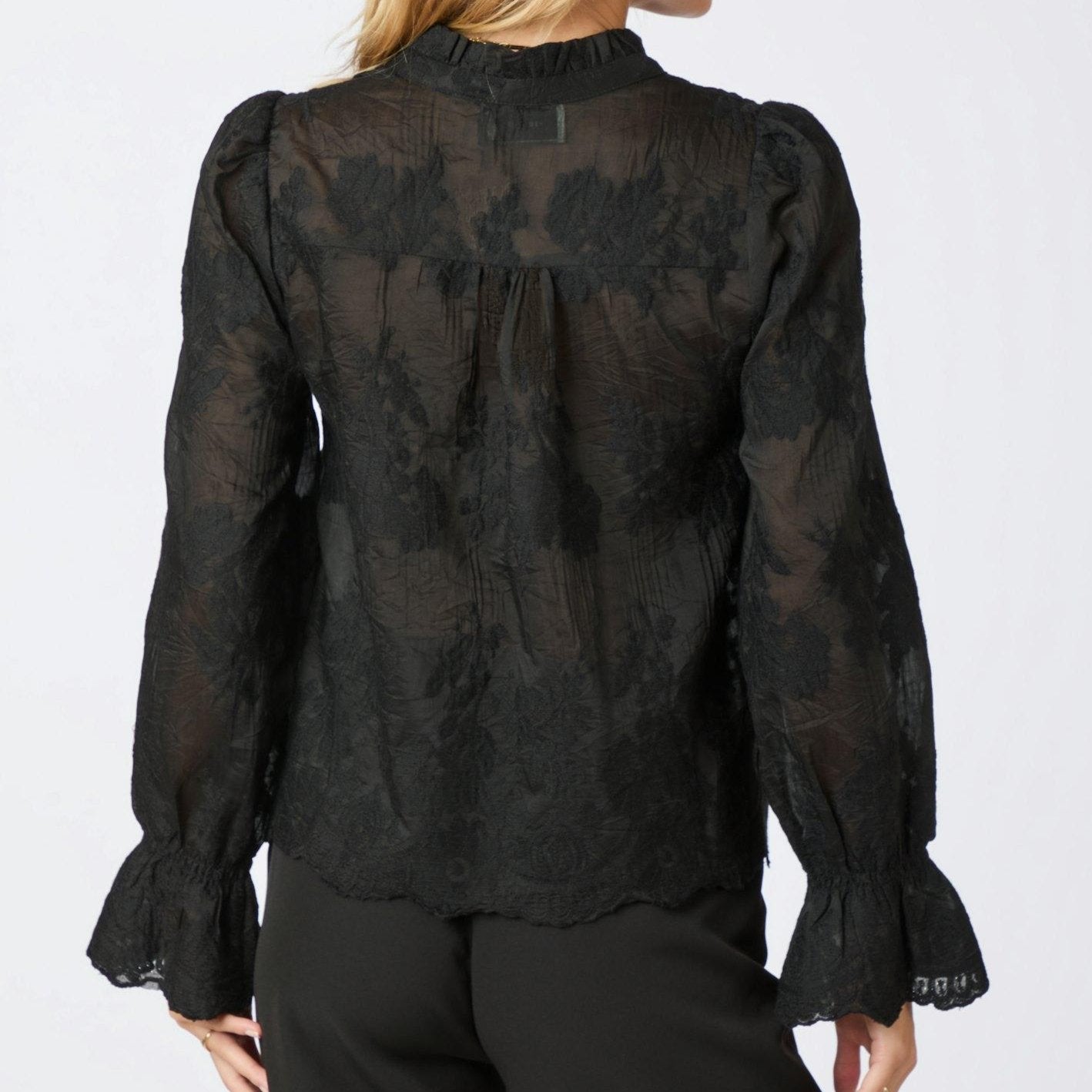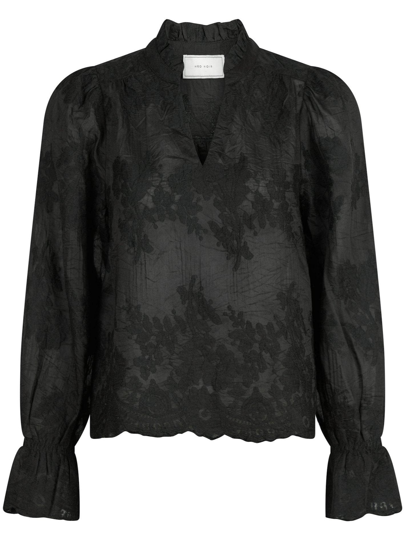 Amara Big Embroidery Bluse Black fra Neo Noir