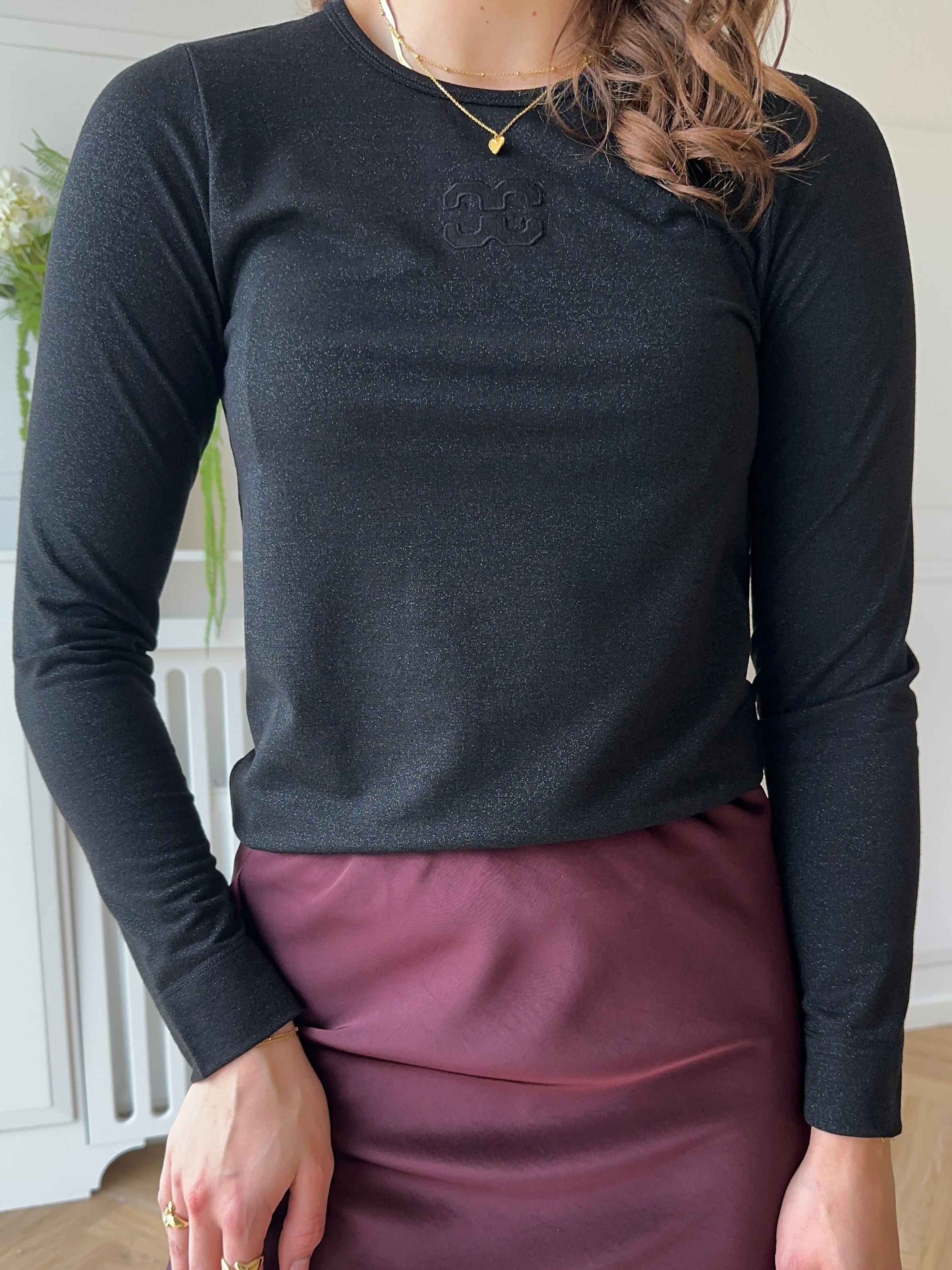Manny Lurex Emb LS T-shirt Black fra Co'Couture