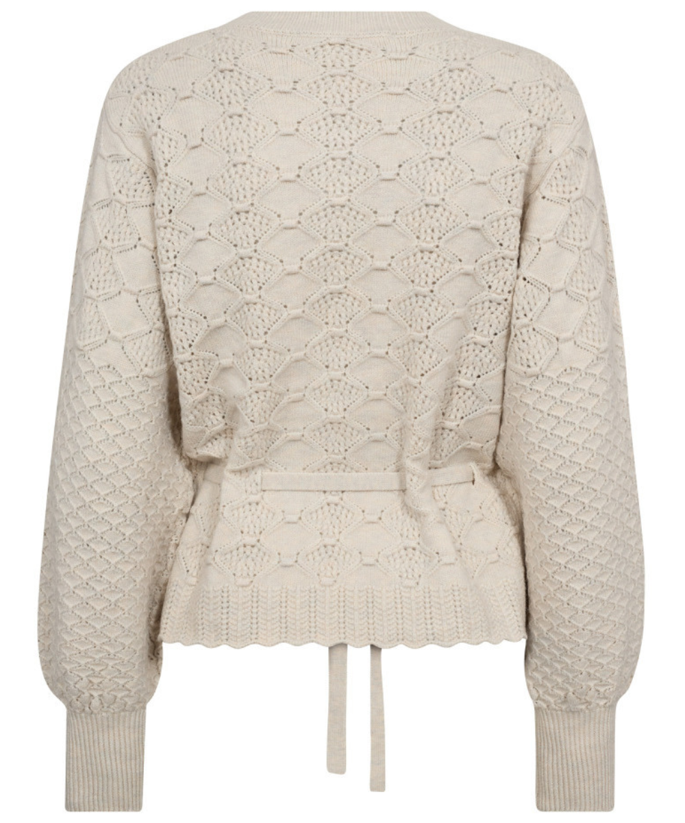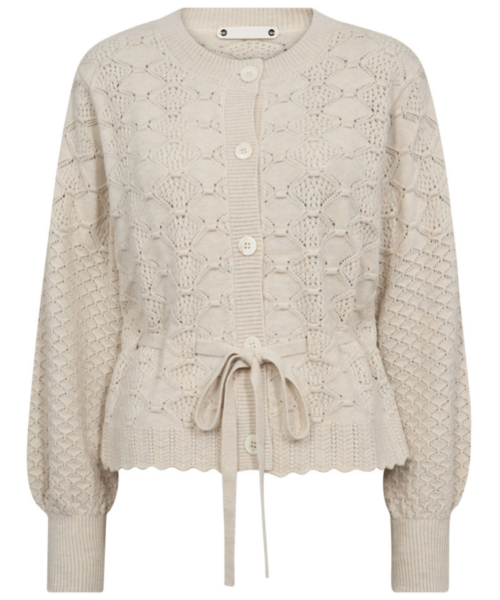 Row Pointelle Tie Cardigan Ivory fra Co'Couture