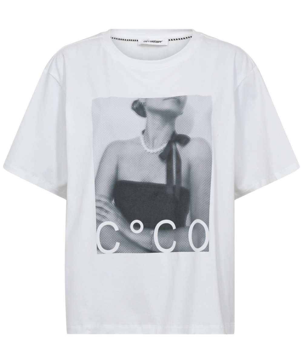 Siara Pearl Necklace Box T-shirt White fra Co'Couture