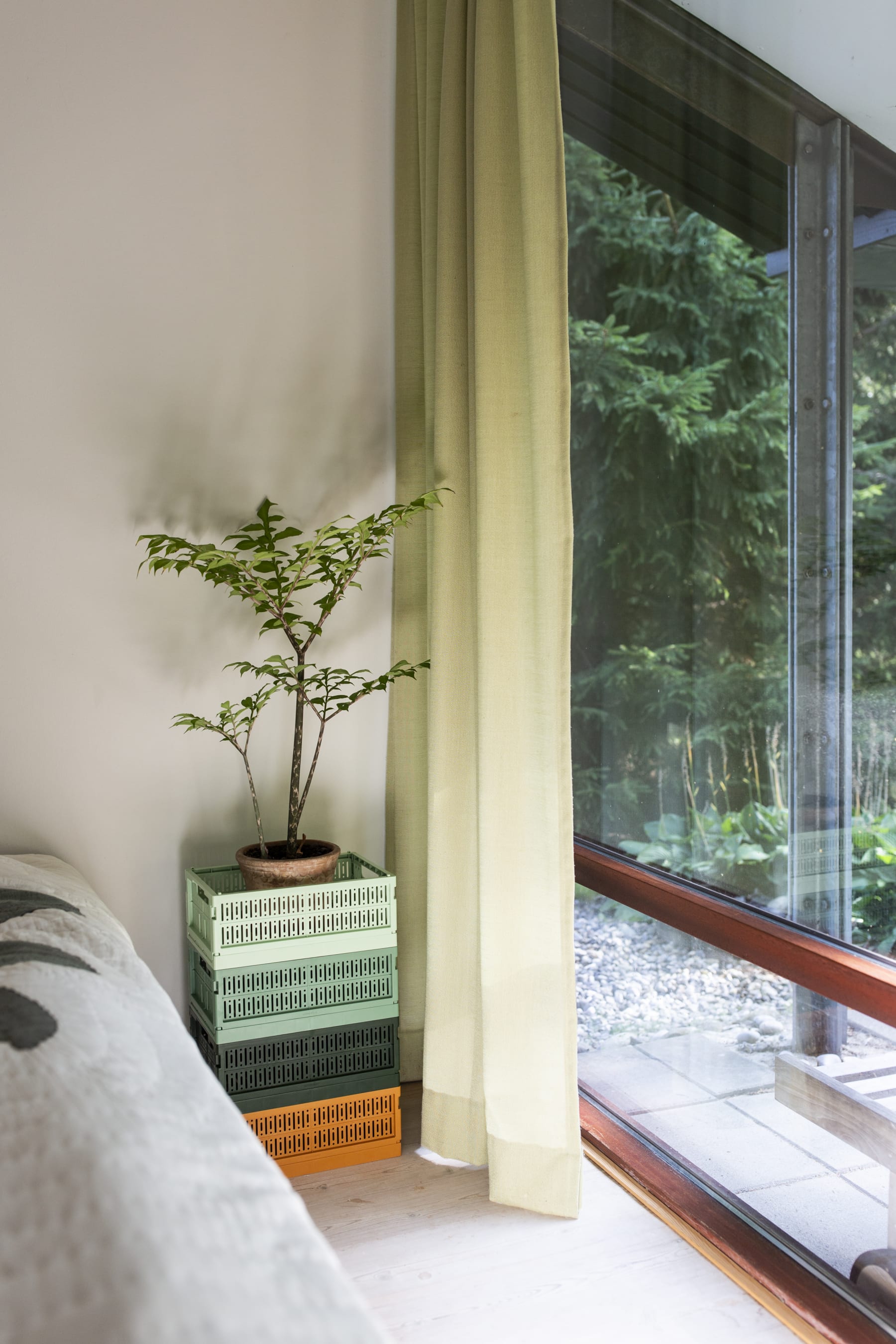 Praktisk og flot foldekasse i genbrugt plastik, som kan stables. Denne udgave er i en smuk, støvet grøn.
