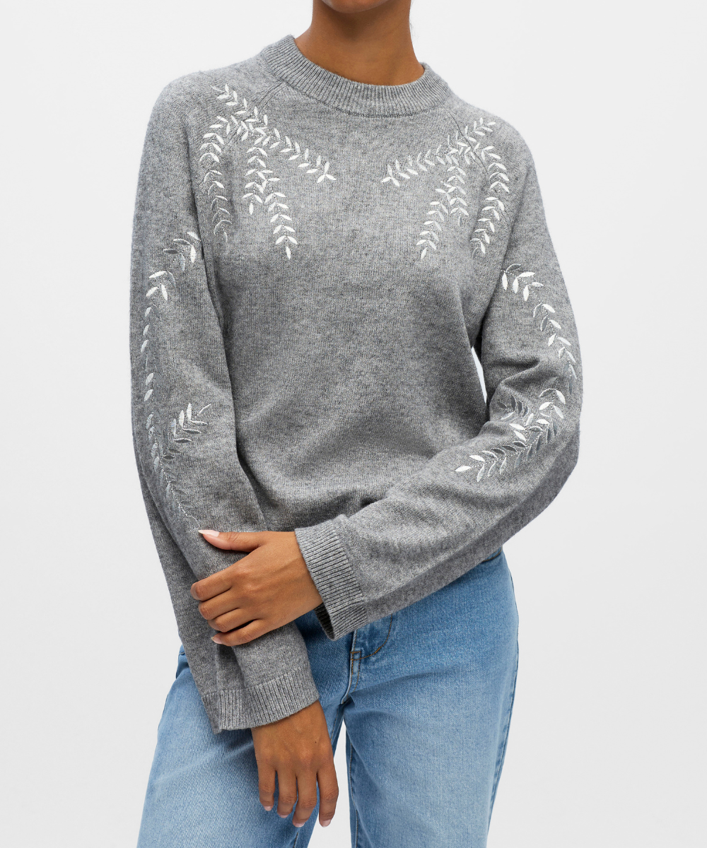 Laney Rubin LS Strik Medium Grey Melange fra Object
