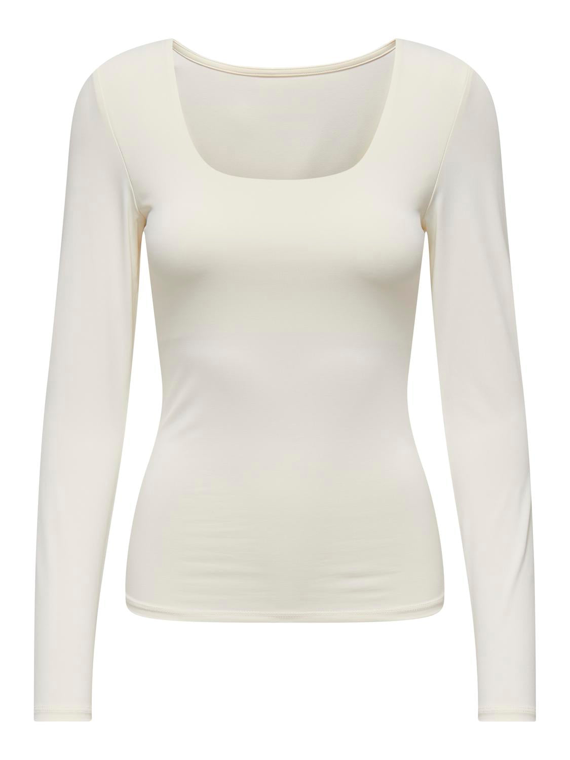 Only Ea LS 2-Way Deep Neck Bluse Cloud Dancer NO25