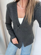 Myera LS One Button Cardigan Dark Grey Melange fra Only