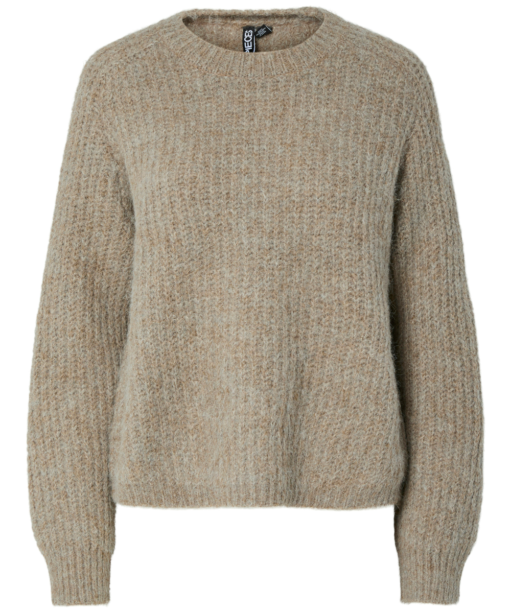 Pieces Cleo LS O-Neck Chunky Strik Greige Melange NOA25