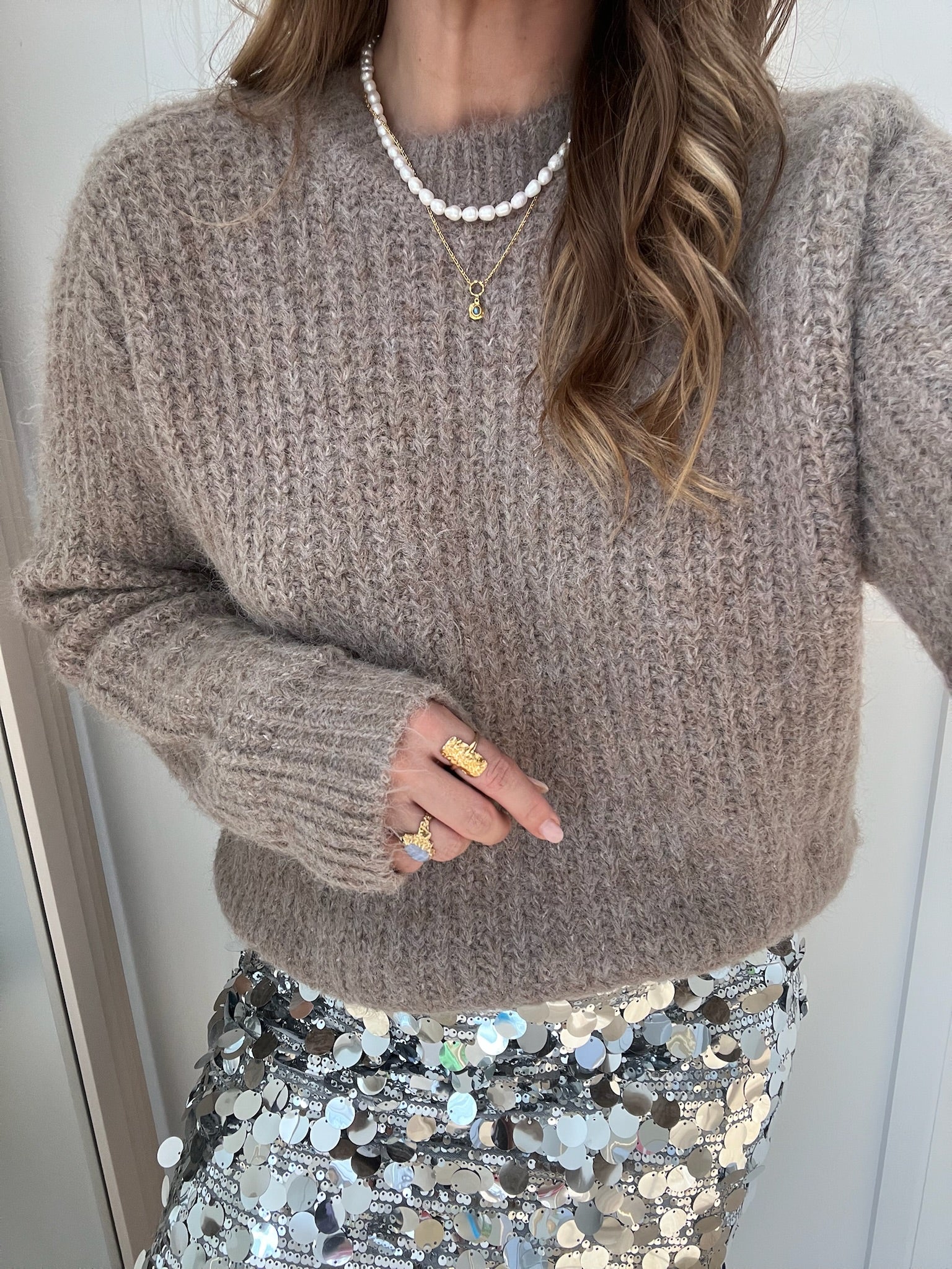 Pieces Cleo LS O-Neck Chunky Strik Greige Melange NOA25 Pieces Cleo LS O-Neck Chunky Strik Hot Fudge NOA25