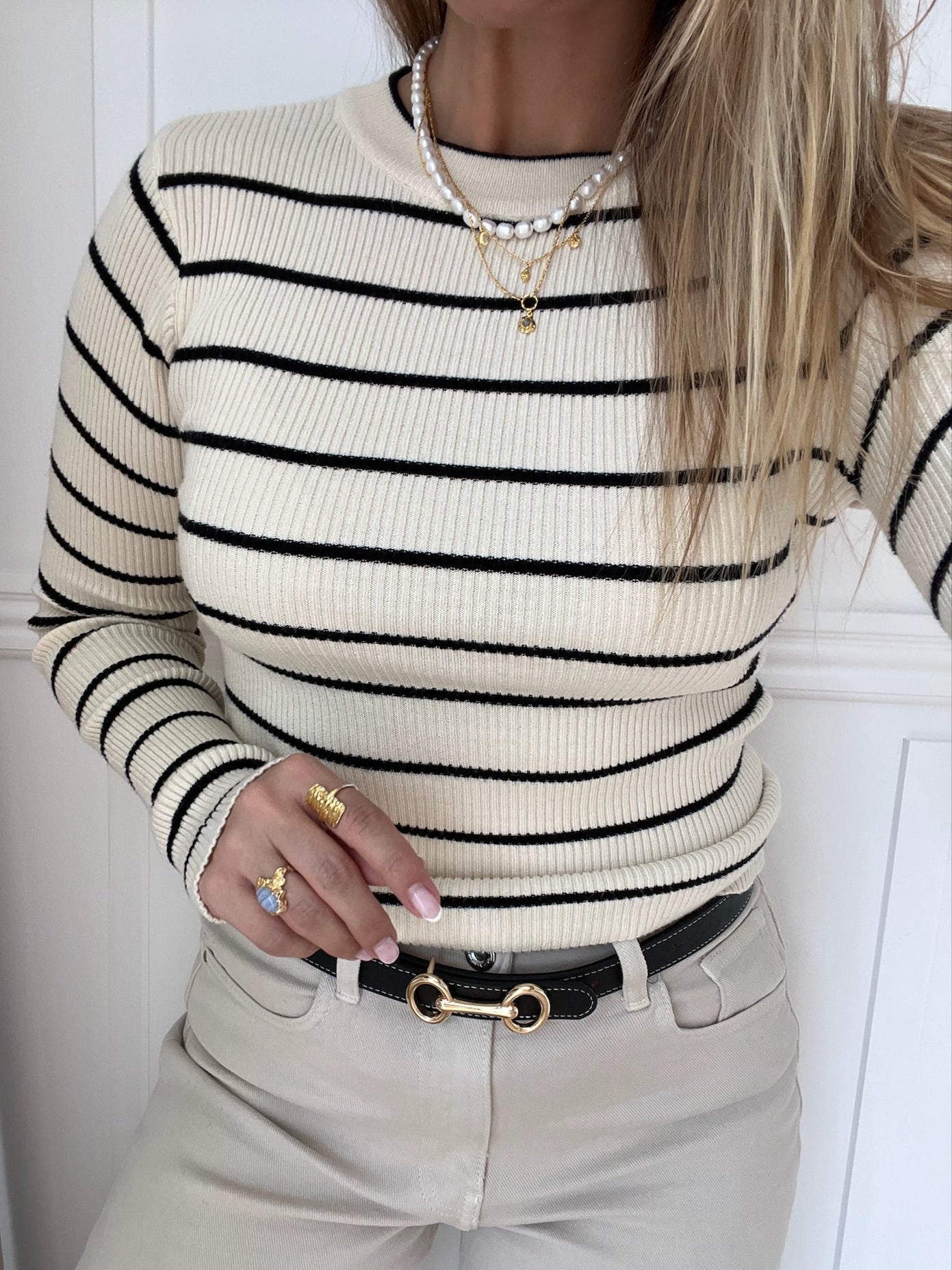 Mira New LS O-Neck Strik Birch/Black fra Pieces