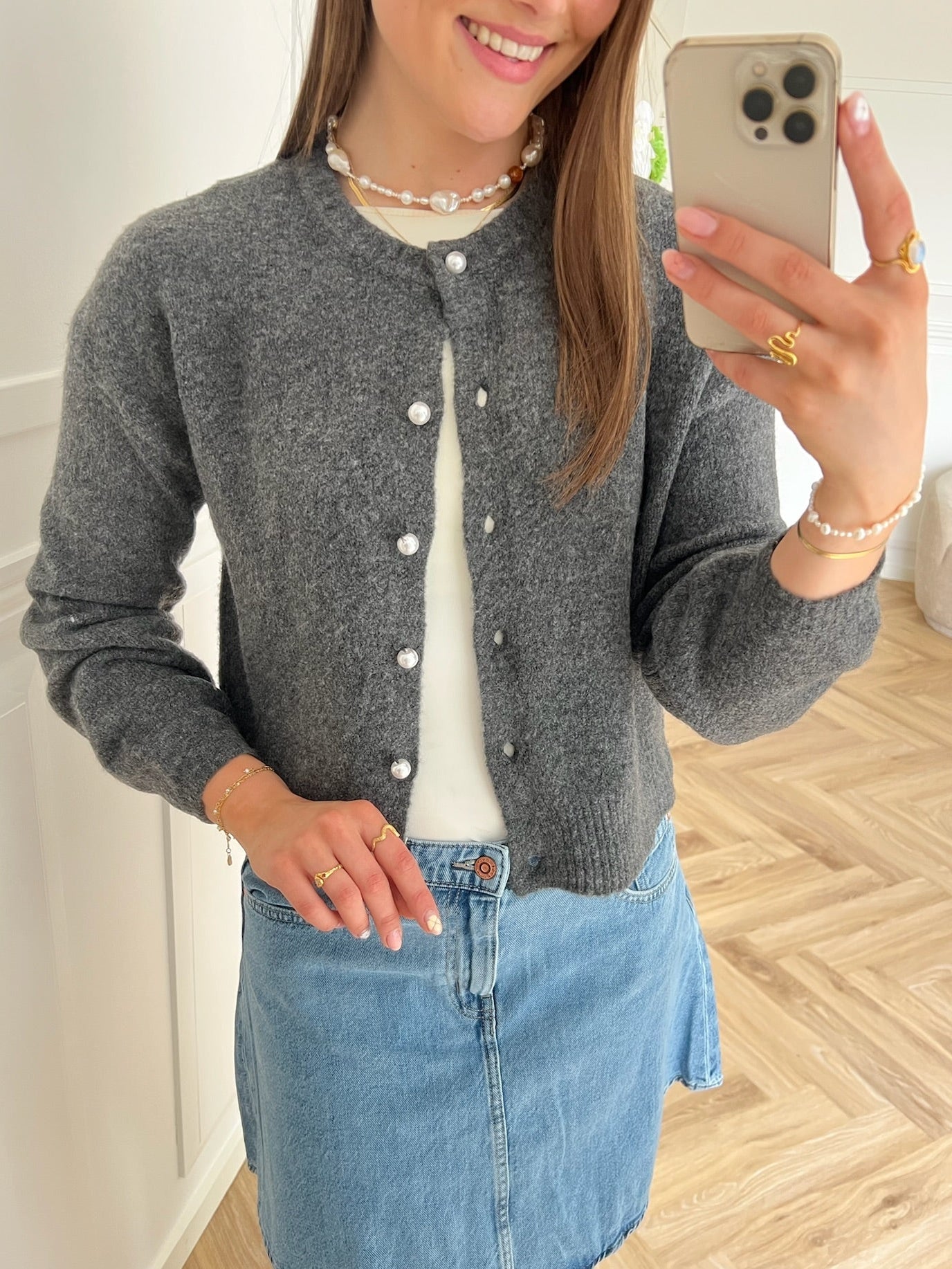 Only Isabella LS Cardigan Dark Grey Melange NOA25